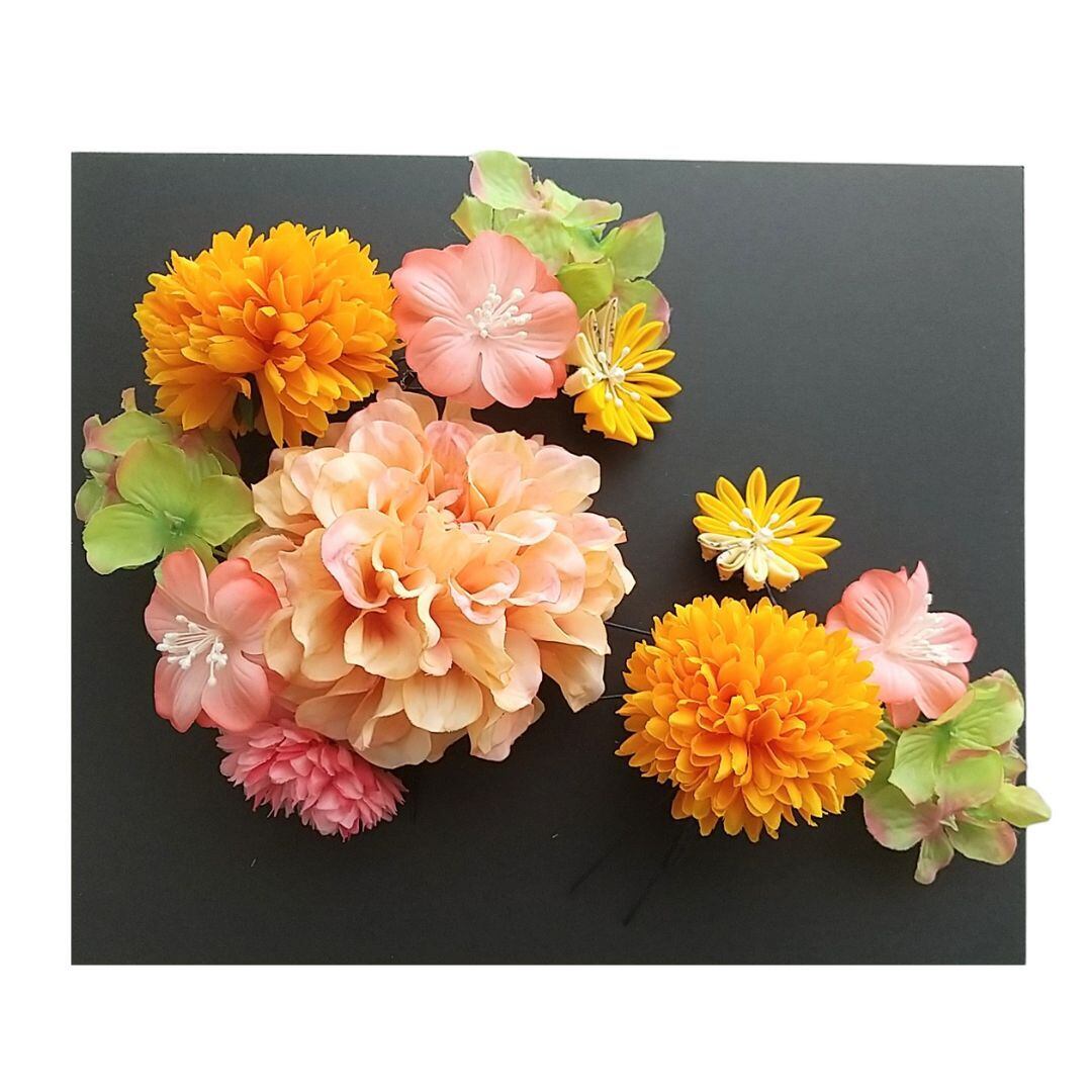- **華やかなデザイン**: 繊細なつまみ細工や水引、アーティフィシャルフラワーが絶妙に交わり、特別な日を盛り上げる華やかなデザイン。色彩豊かな飾りが、あなたの魅力を一層引き立てます。