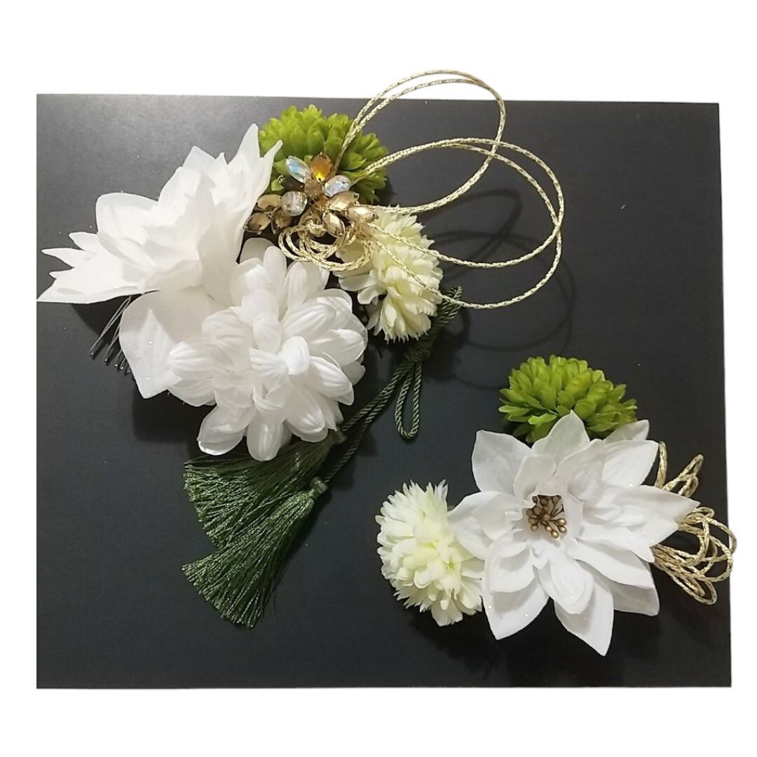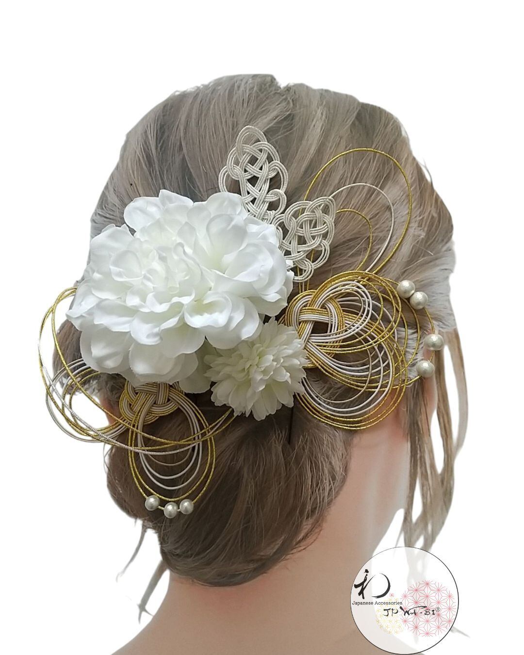 - **華やかなデザイン**: 繊細な水引とアーティフィシャルフラワーが絶妙に交わり、特別な日を華やかに演出するデザイン。色彩豊かな飾りが、あなたの魅力を一層引き立てます。
