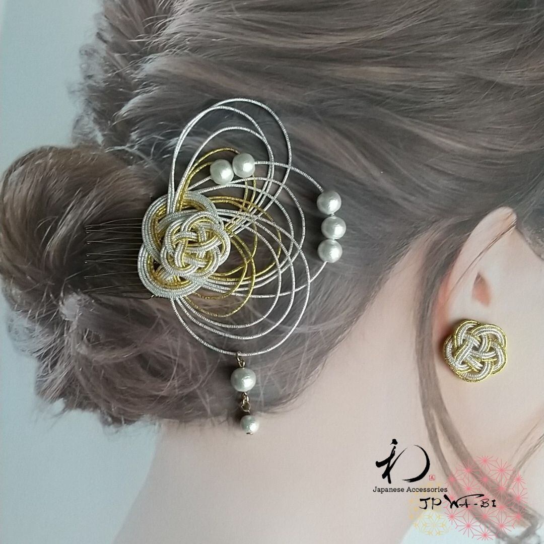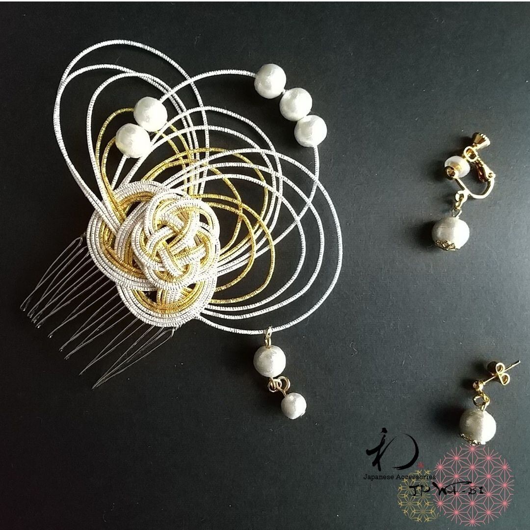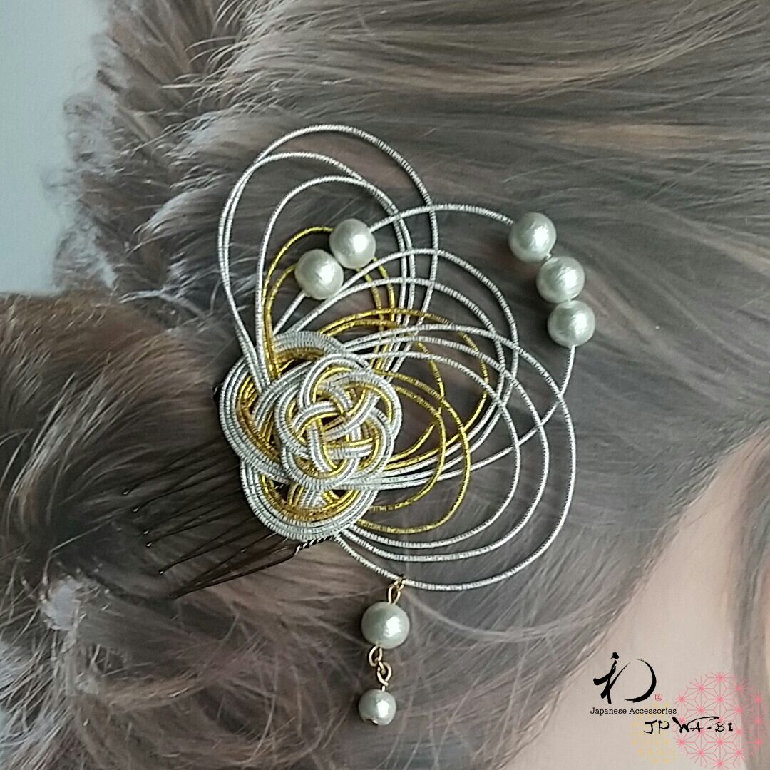 和洋折衷 国産水引髪飾り・簪/結婚式・入学式・卒業式/着物・ドレス/コーム付き/袋入り