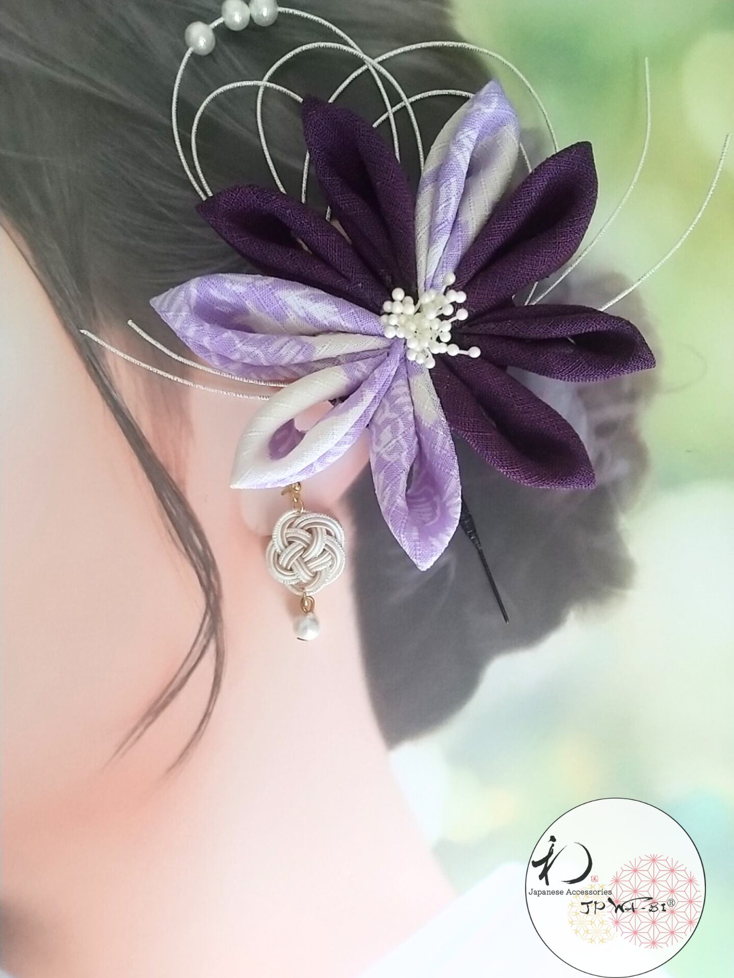 - **紫を基調にした大人なデザイン**: つまみ細工と水引アクセサリーの美しさが融合した夏祭りにぴったりのデザイン。シックで存在感のある髪飾りが、あなたの魅力を引き立てます。