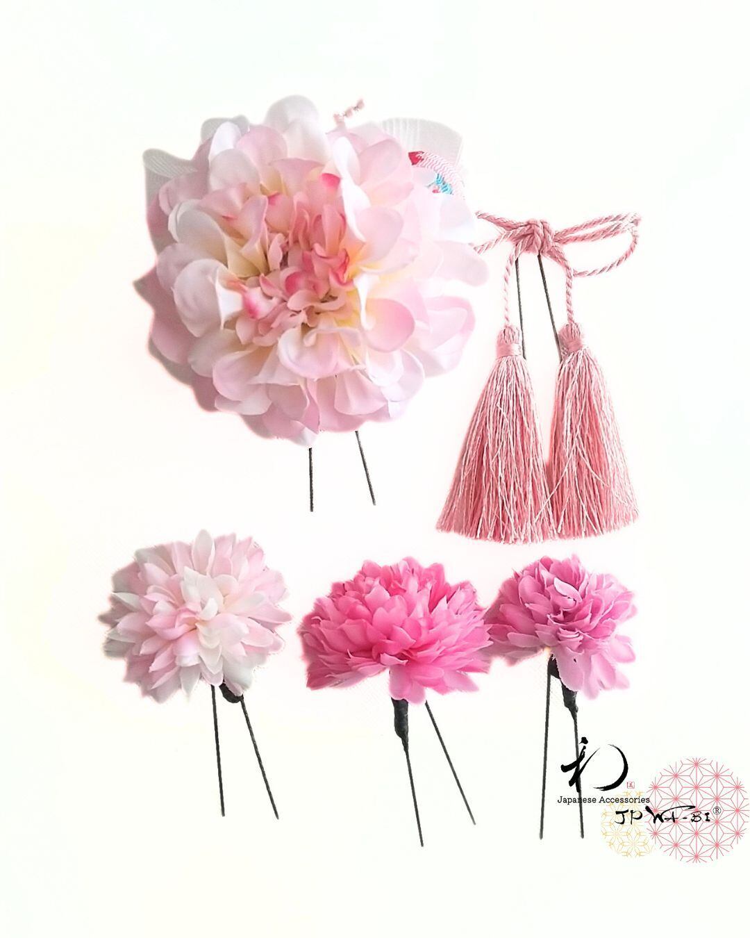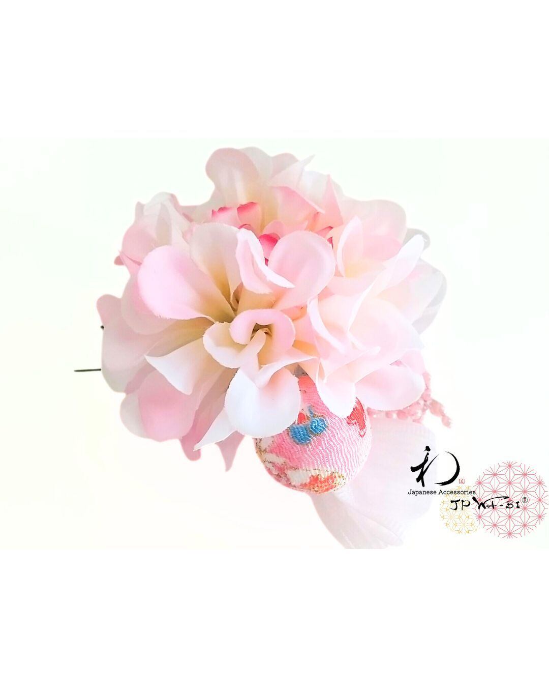 ■ Kids髪飾り・花飾り//七五三・1/2成人式・お正月・夏祭り/振袖・着物髪飾り/手まり・リボン・タッセル付き/袋入り