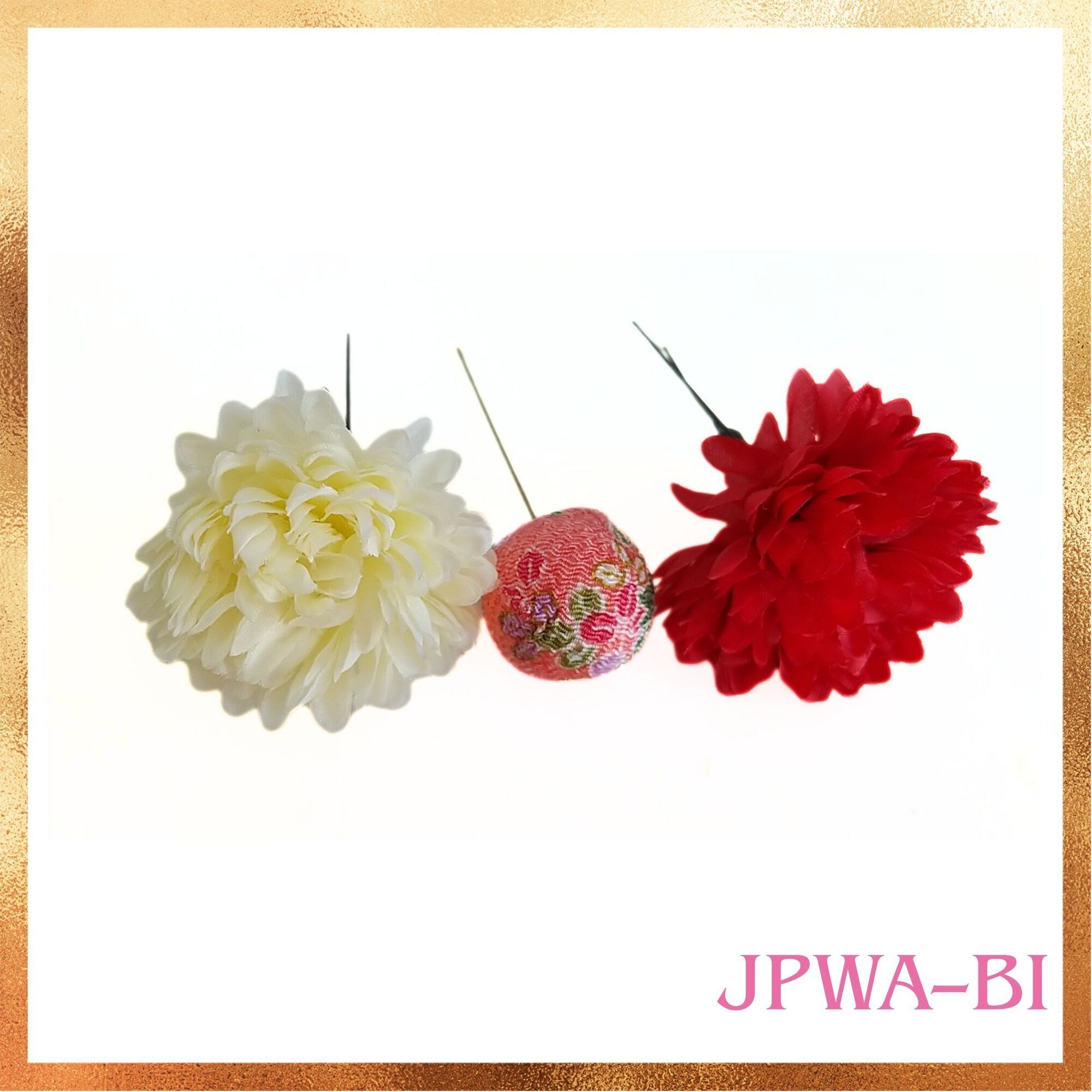 セット内容: 白色と赤色の小花、サーモンピンク色の和風手まりピックの3点セット。髪飾りとして最適なサイズです