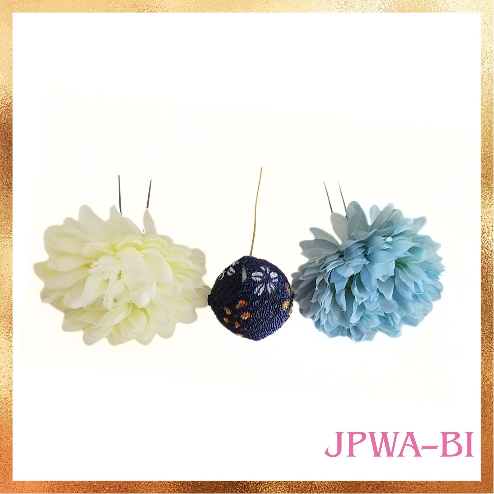 セット内容: ホワイトとスカイブルーの小花、ネイビーブルーの和風手まりピックの3点セット。