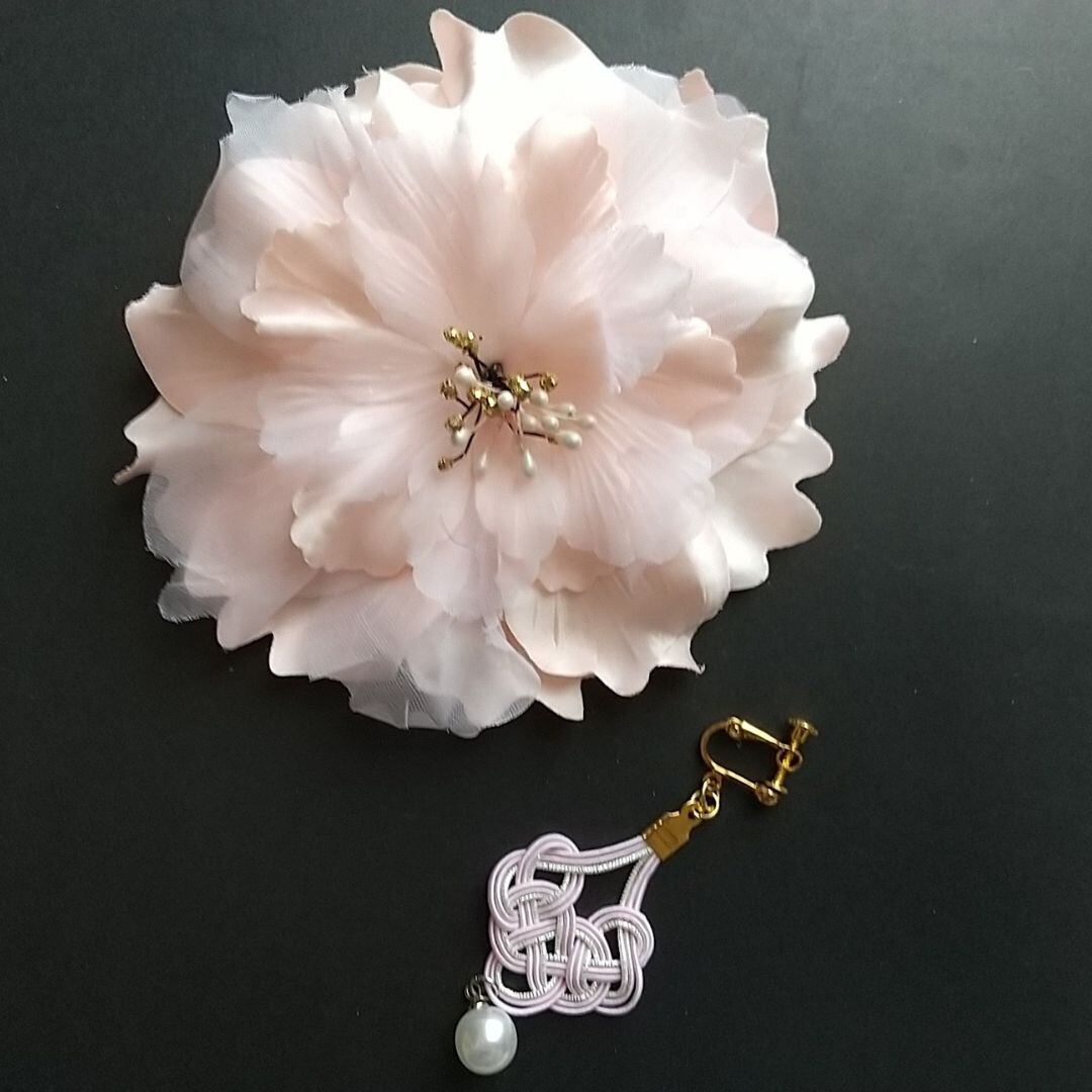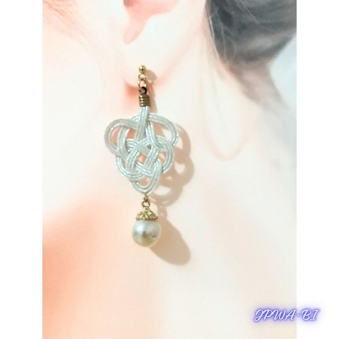 水引イヤリング//金属アレルギーの人にも優しいサージカルステンレス/成人式・結婚式・卒業式/浴衣・着物・袴・ドレス/ペールピンク×シルバー/袋入り
