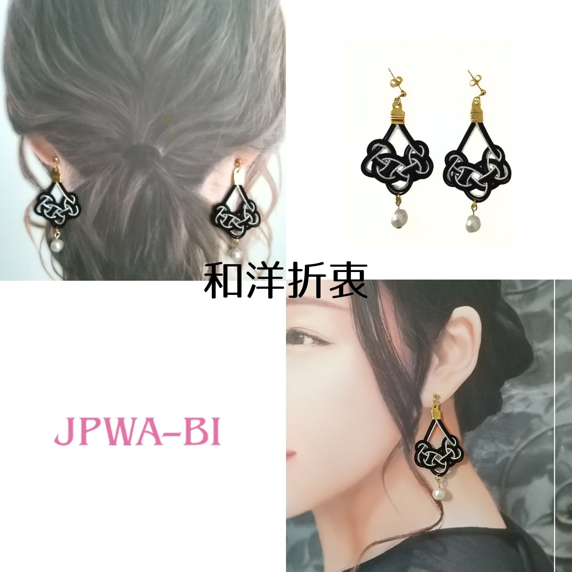 水引ピアス//金属アレルギーの人にも優しいサージカルステンレス/成人式・結婚式・卒業式/浴衣・着物・袴・ドレス/ブラック×シルバー/袋入り | 和洋折衷アクセサリー ・小物をプロデュース するジェイピーワビ