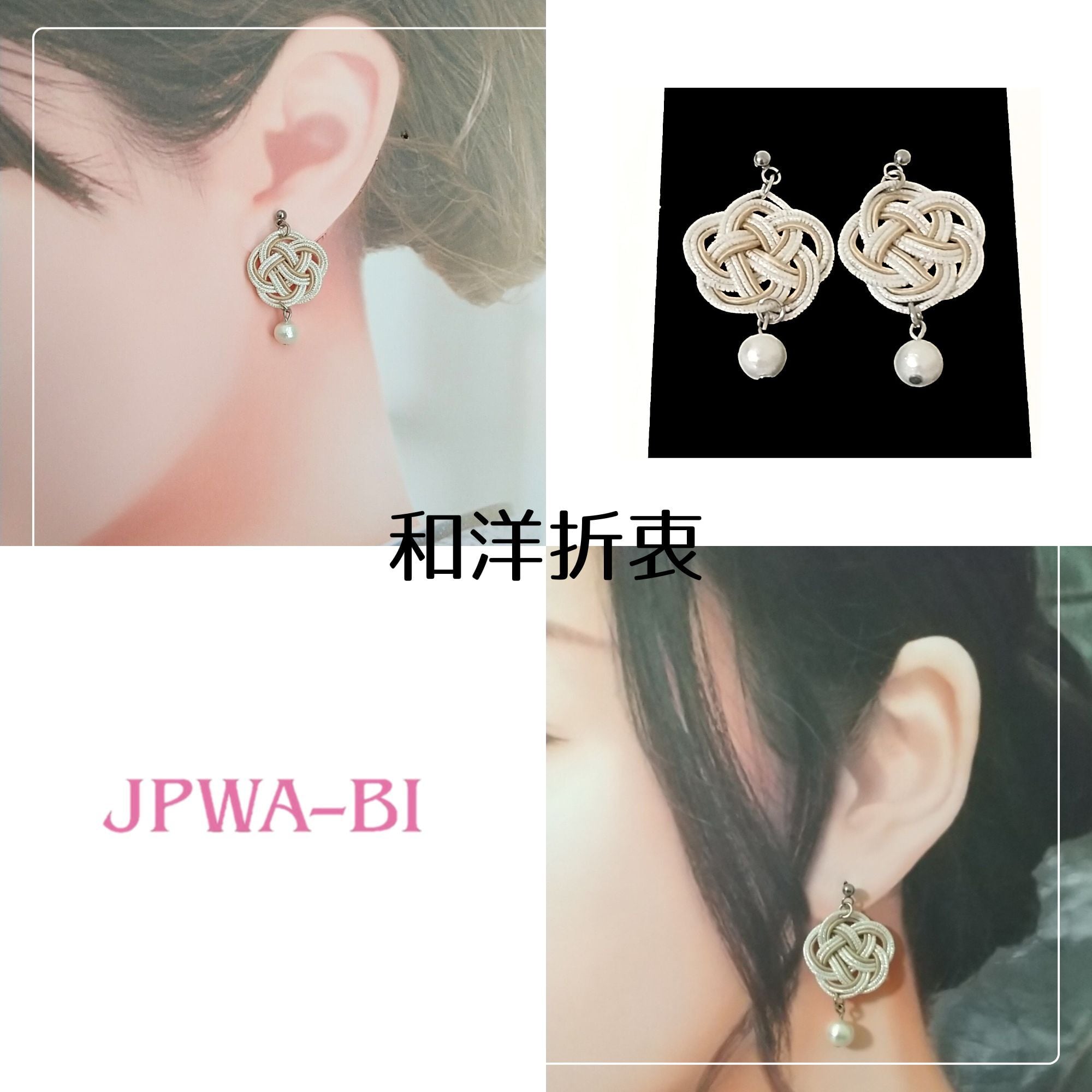和洋折衷 水引ピアス//金属アレルギーの人にも優しいサージカルステンレス使用/シルバー金具/軽量/浴衣・着物・袴・ドレス・普段使い/成人式・結婚式・卒業式/3色展開 | 和洋折衷アクセサリー ・小物をプロデュース するジェイピーワビ