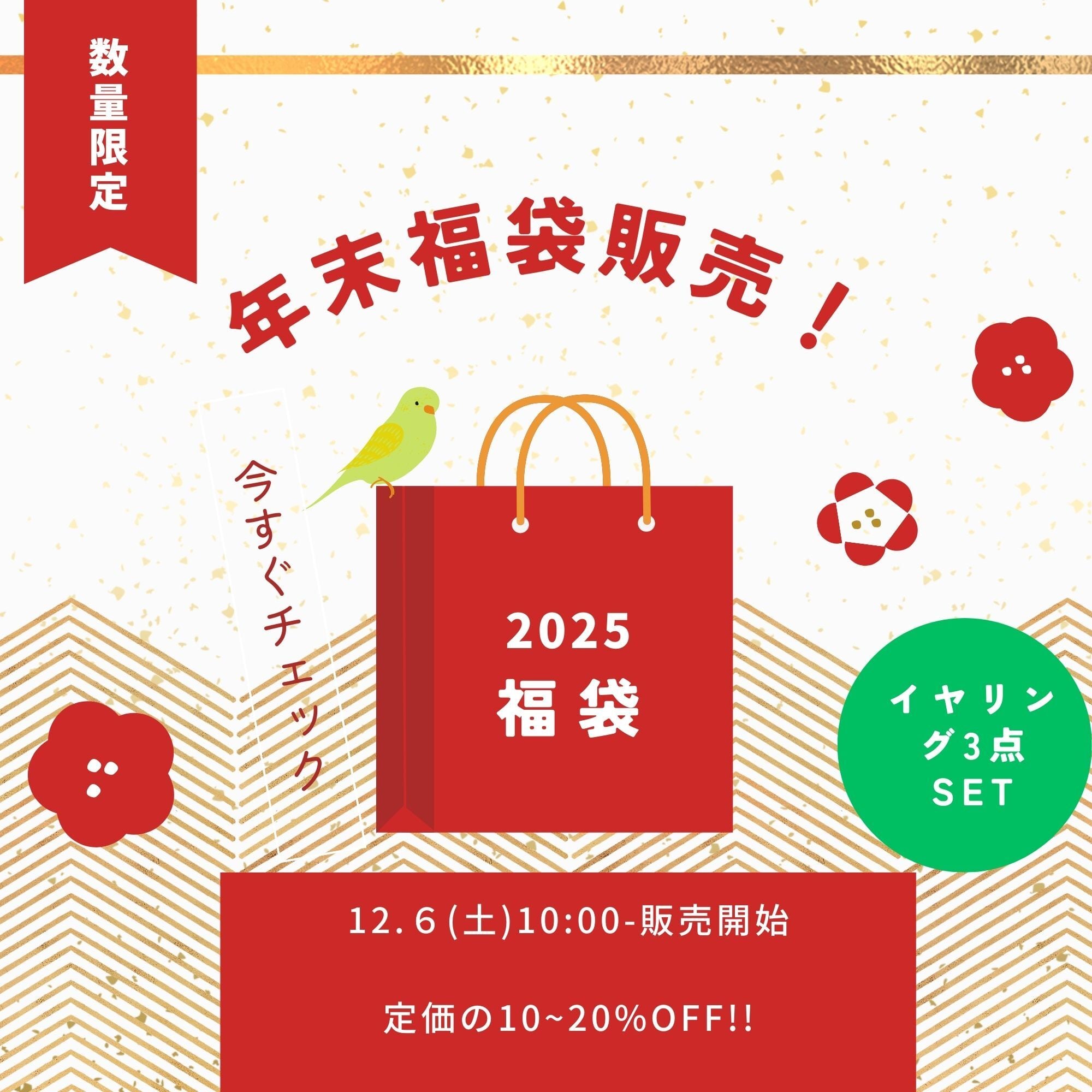特別なイヤリング3点セットが詰まった年末感謝祭福袋をご用意いたしました!選べるデザインで、あなたのスタイルにぴったりのアイテムが見つかるチャンスです。