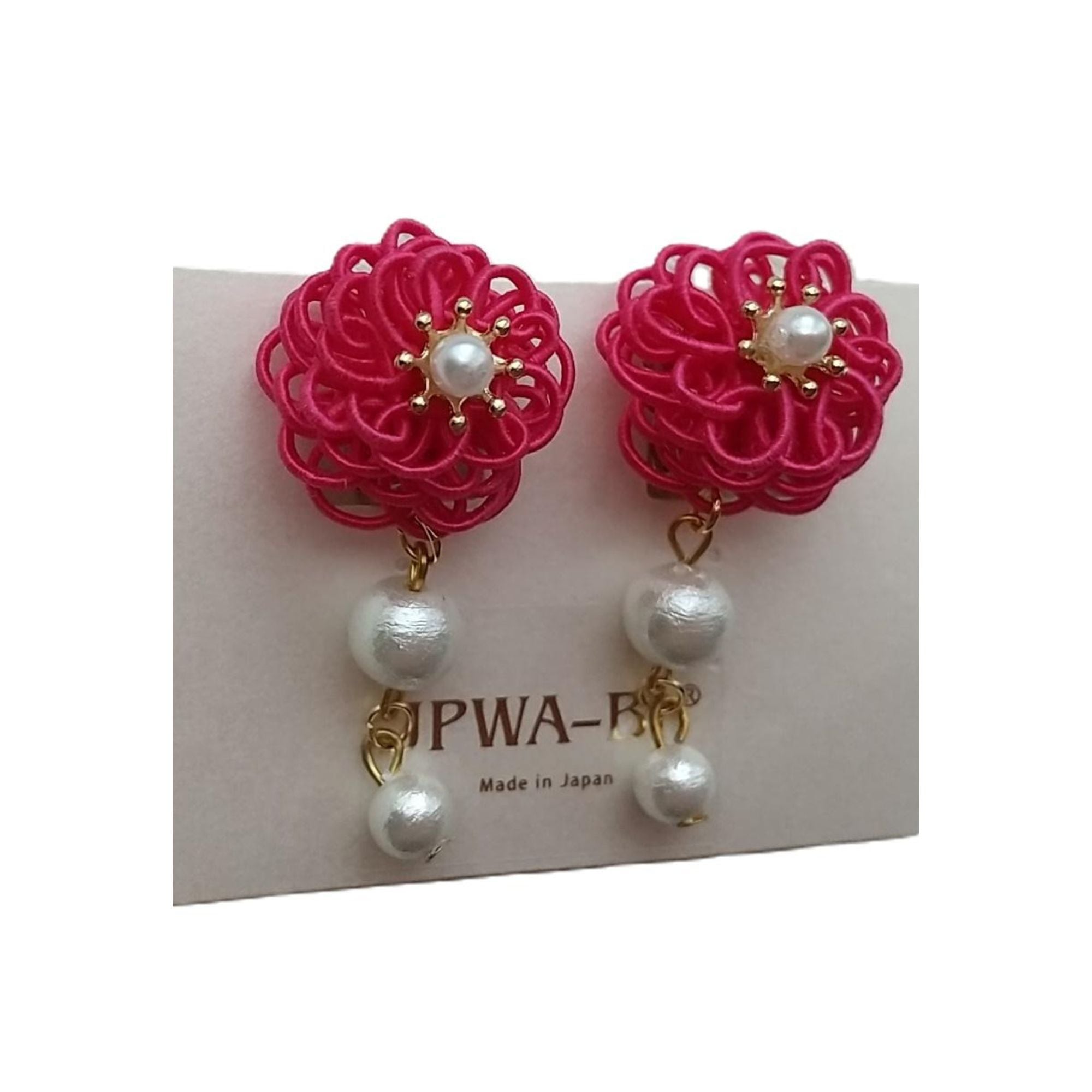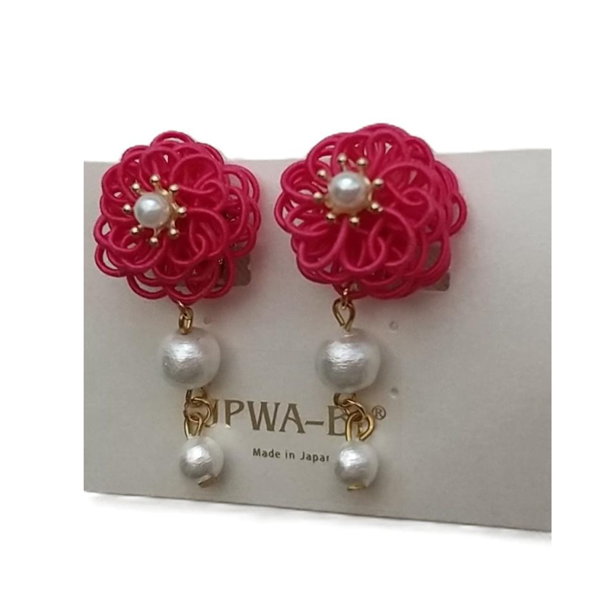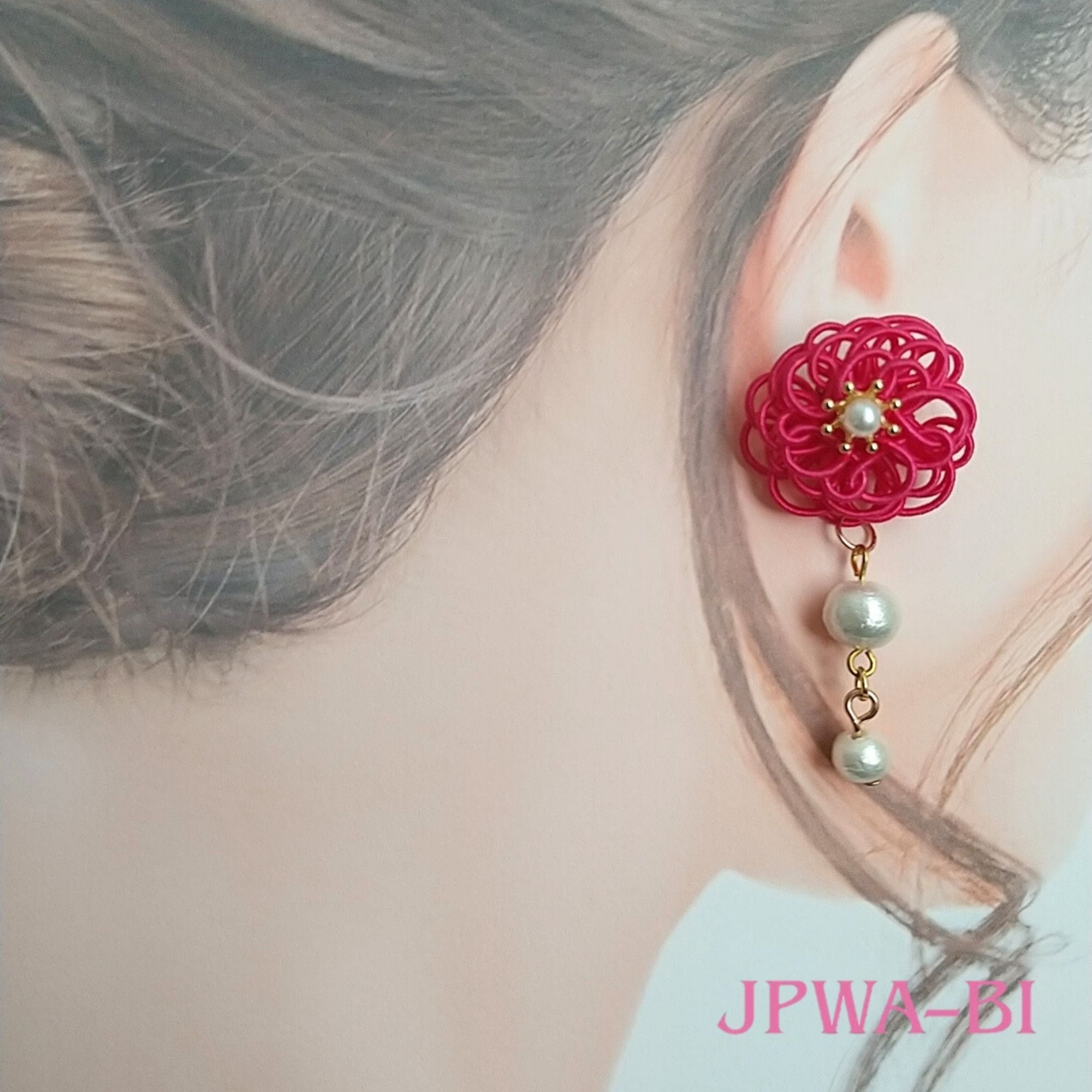 [JPWA-BI ]日本製水引イヤリング//和洋折衷スタイル/ 成人式・結婚式・卒業式・母の日/着物・浴衣・ドレス/コットンパール付き/軽く・耳が痛くならない・フィットして落ちにくい/箱入発送
