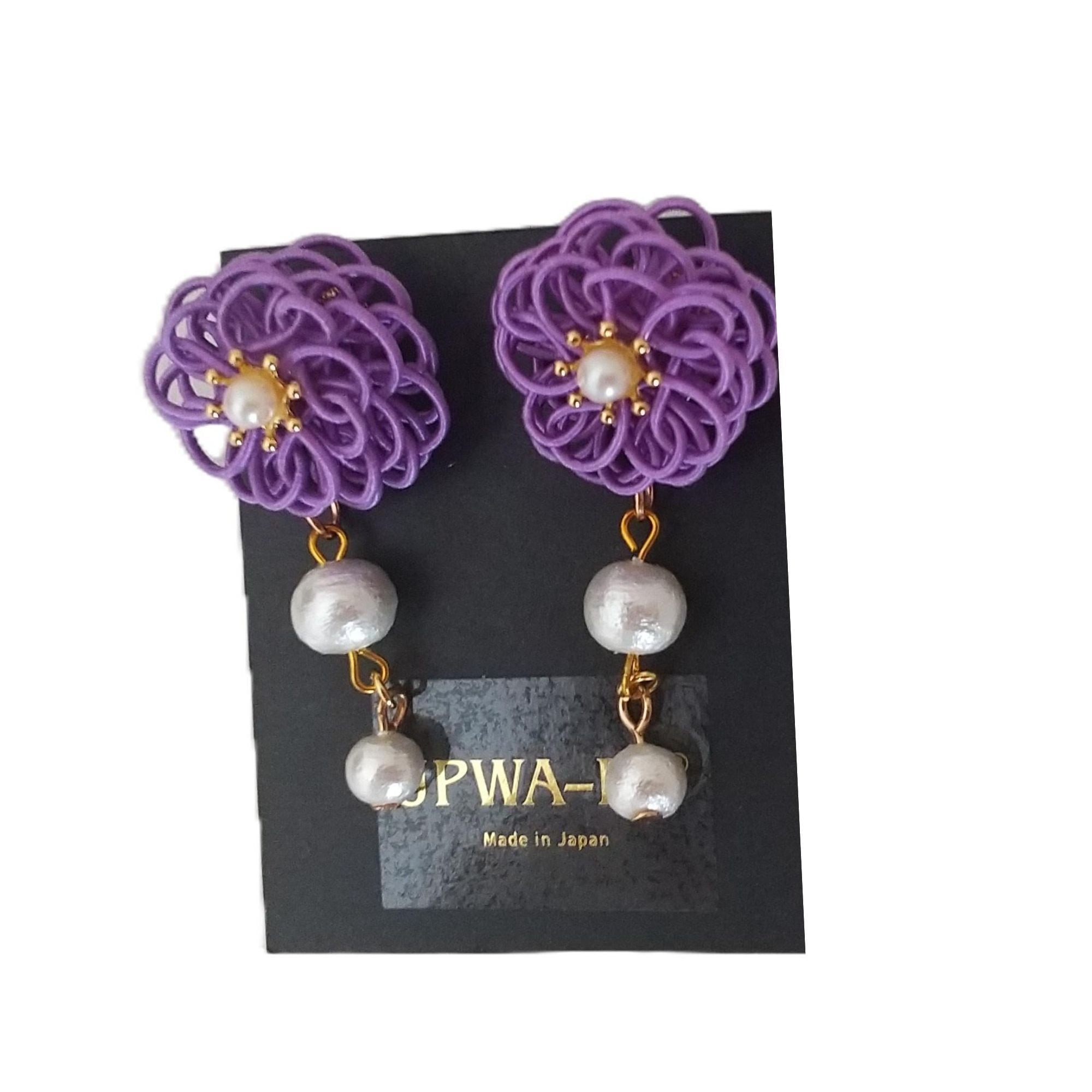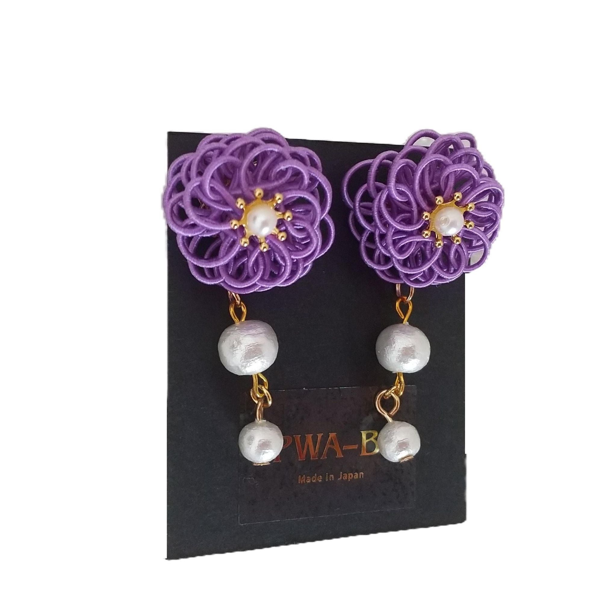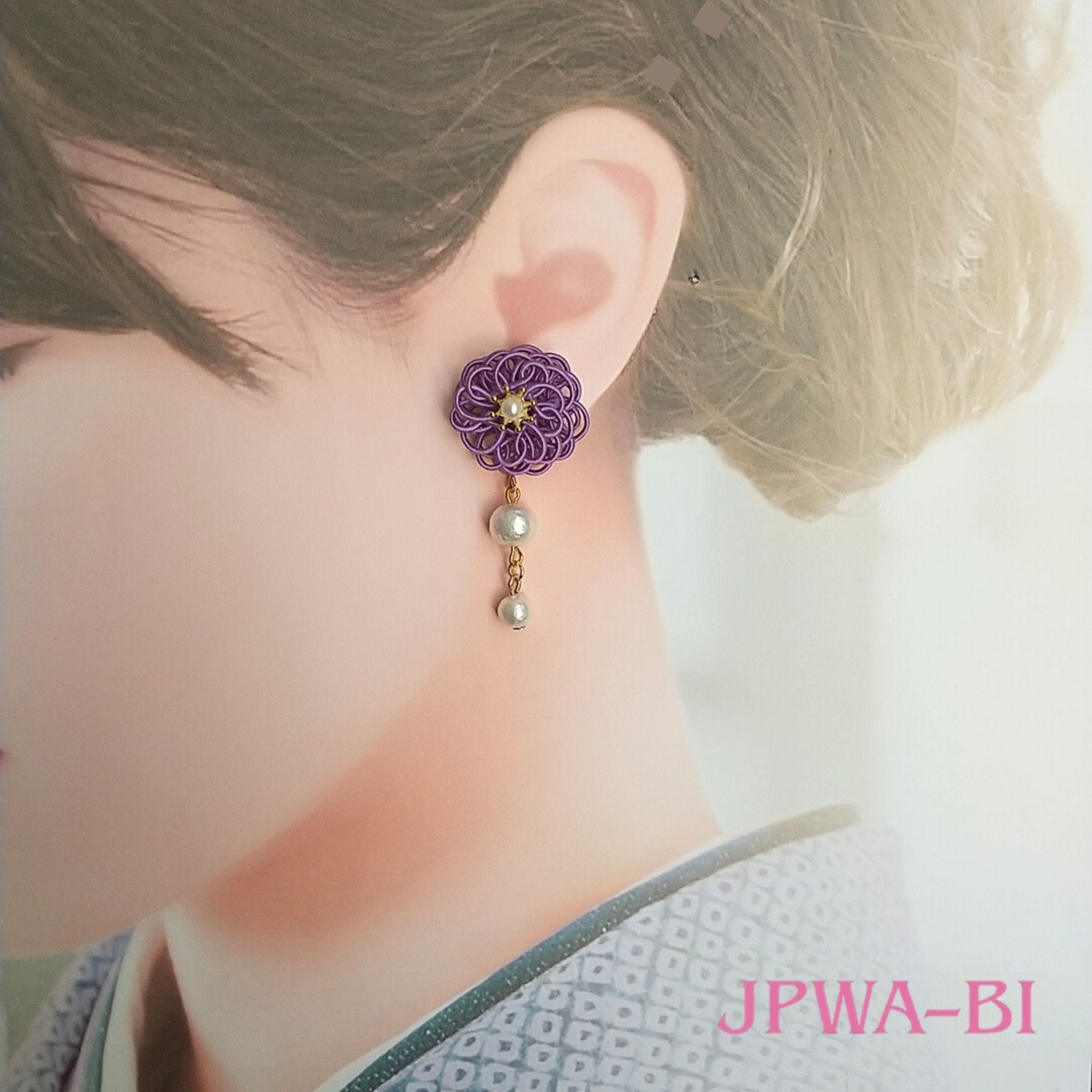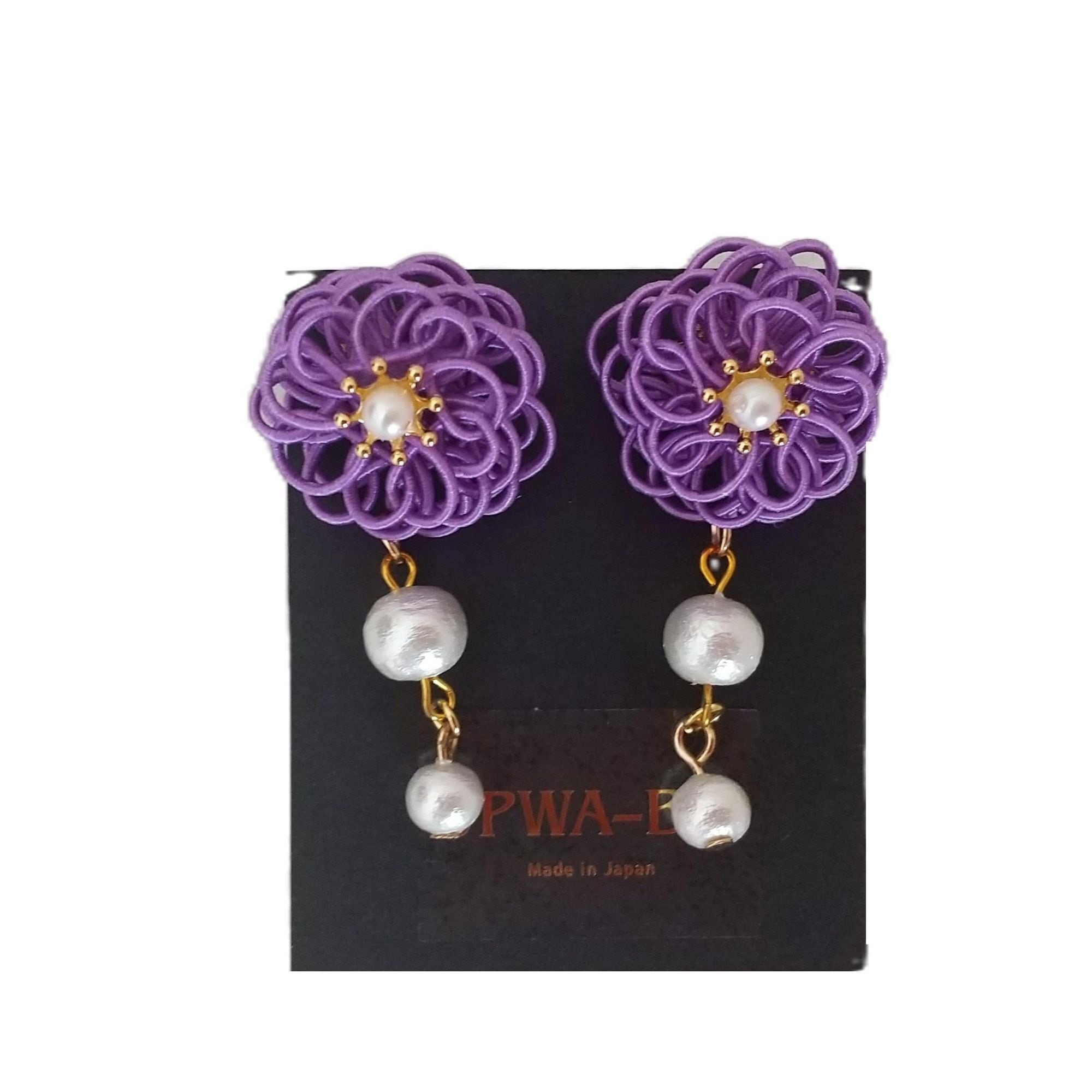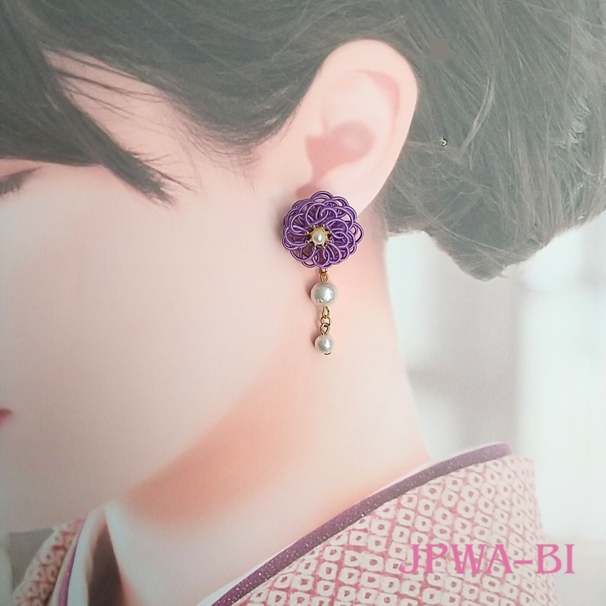 [JPWA-BI ]日本製水引ピアス//和洋折衷スタイル/ 成人式・結婚式・卒業式・母の日/着物・浴衣・ドレス/コットンパール付き/軽い・金属アレルギー対応金具/箱入発送
