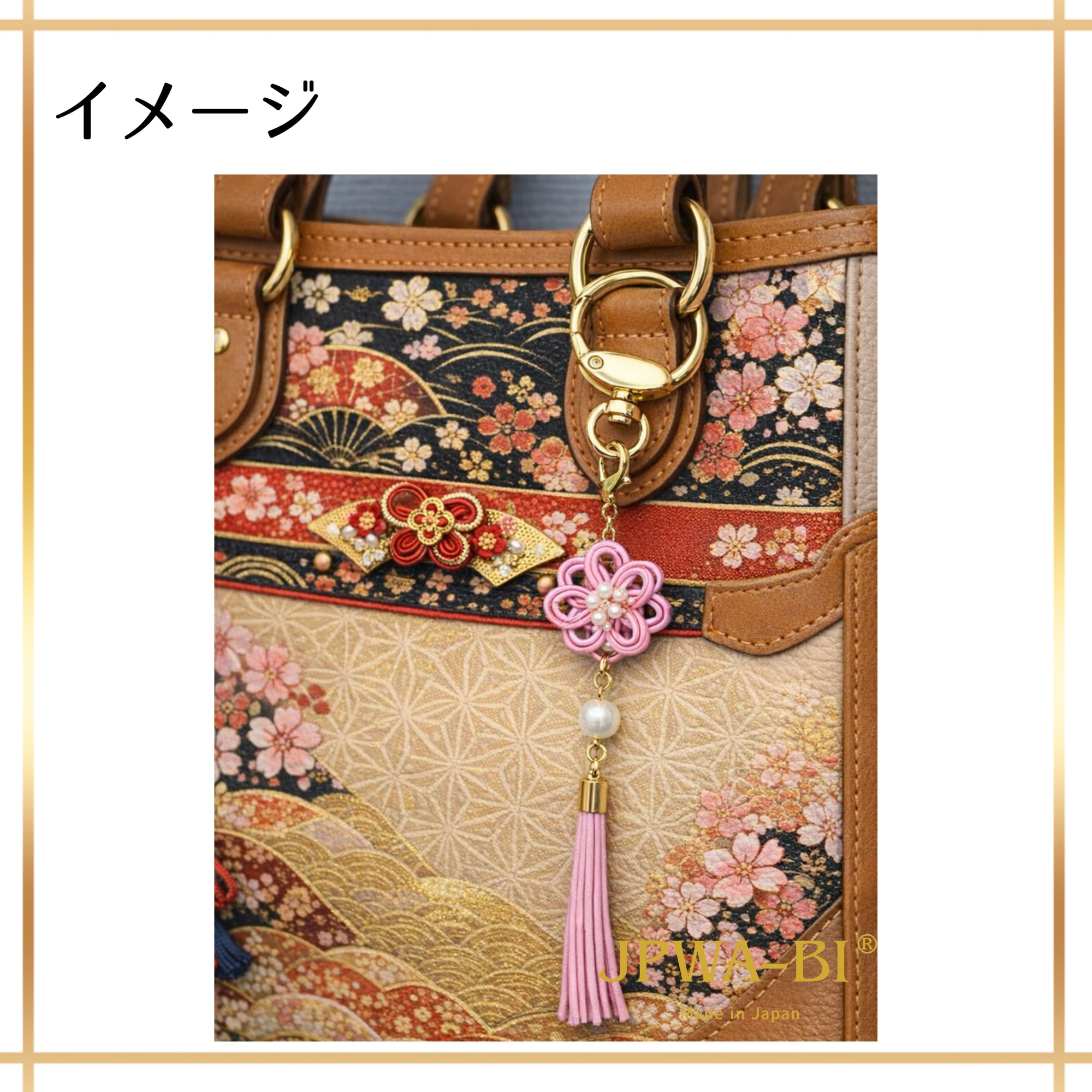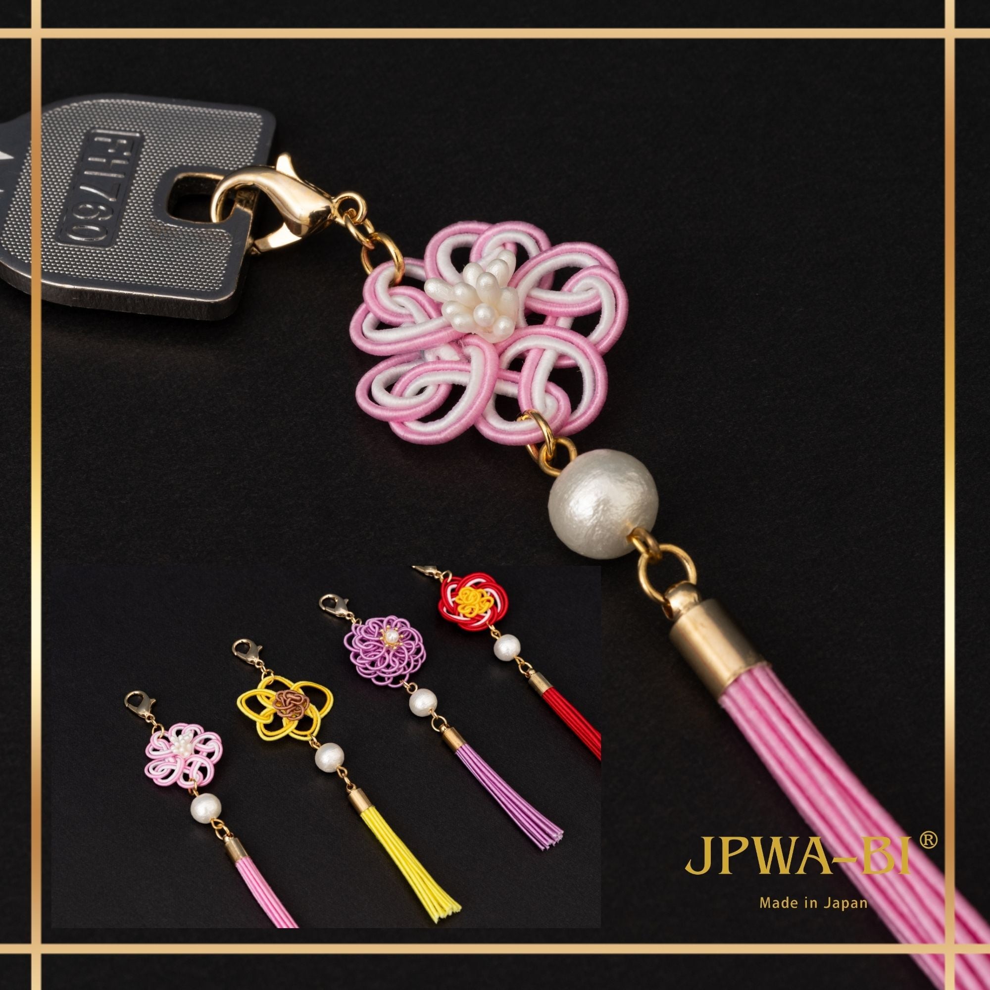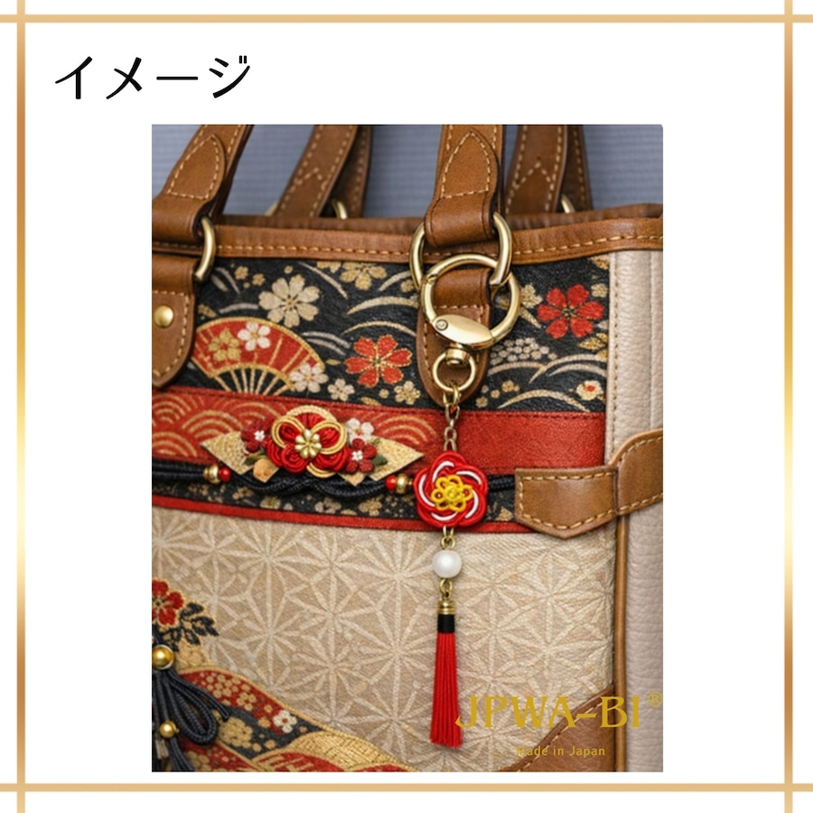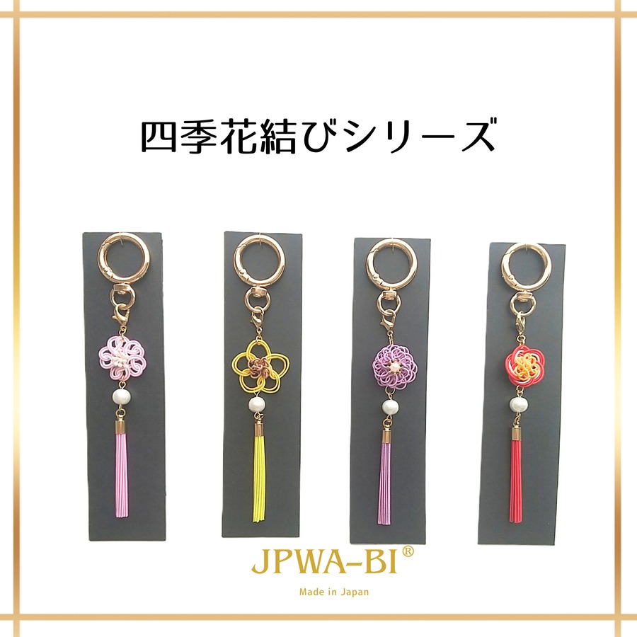 JPWA-BI バッグチャーム キーホルダー 2way 水引 桜 四季花結び 日本製 和モダン 縁起物 ブランドロゴ箱入り ギフト 海外 お土産 さくらピンク