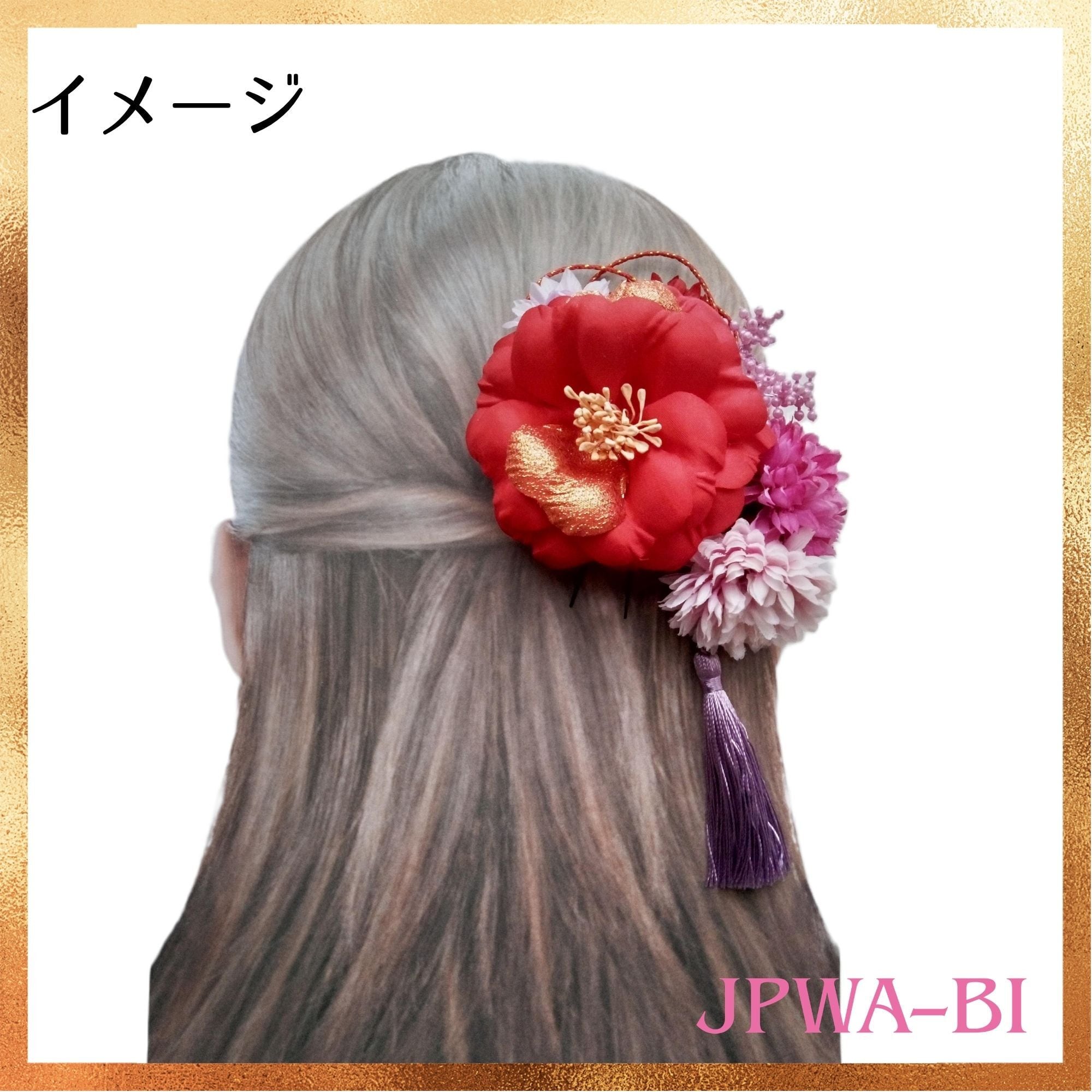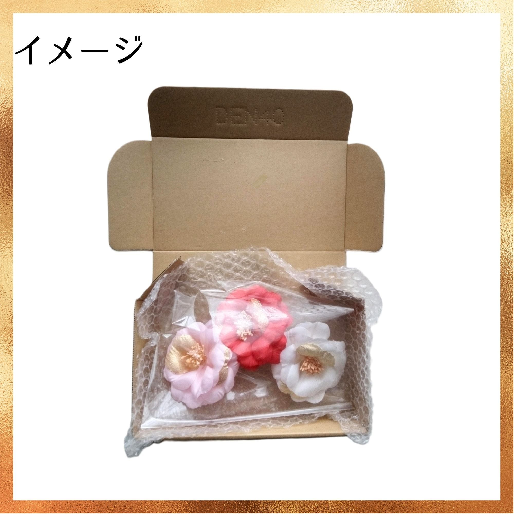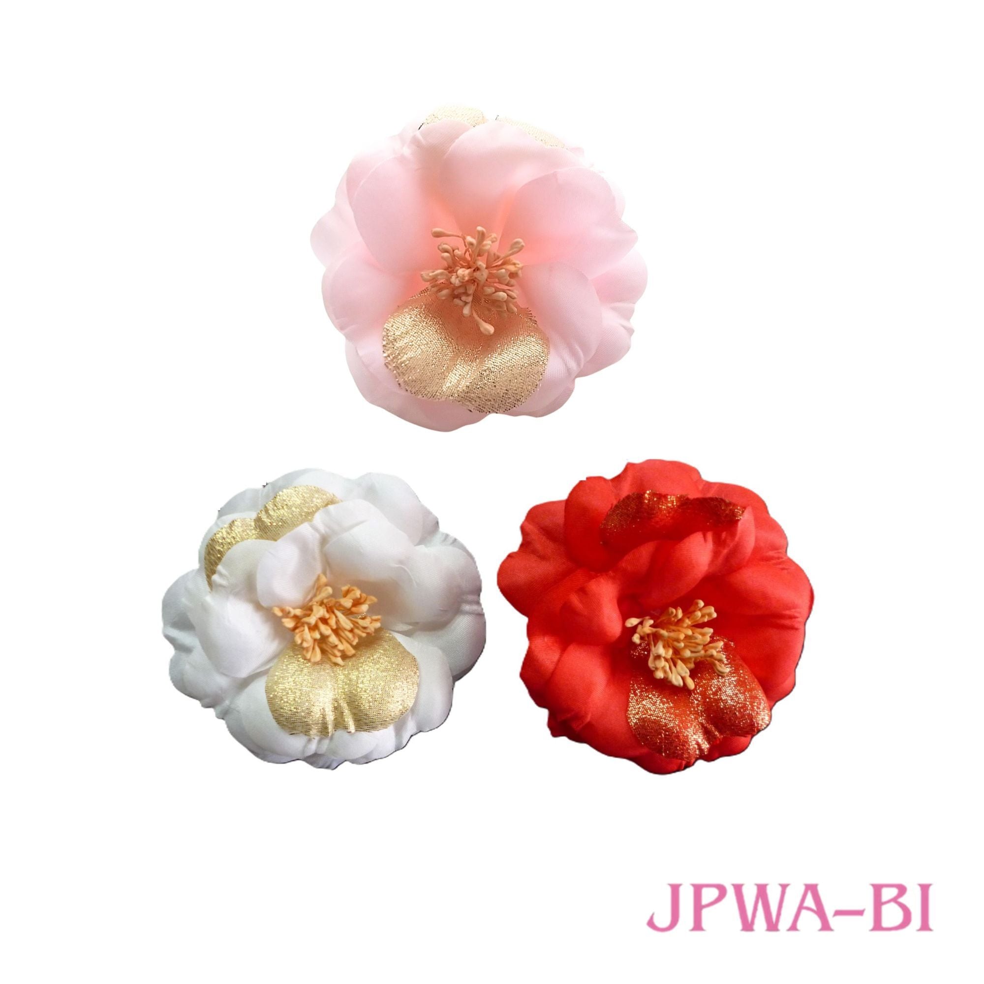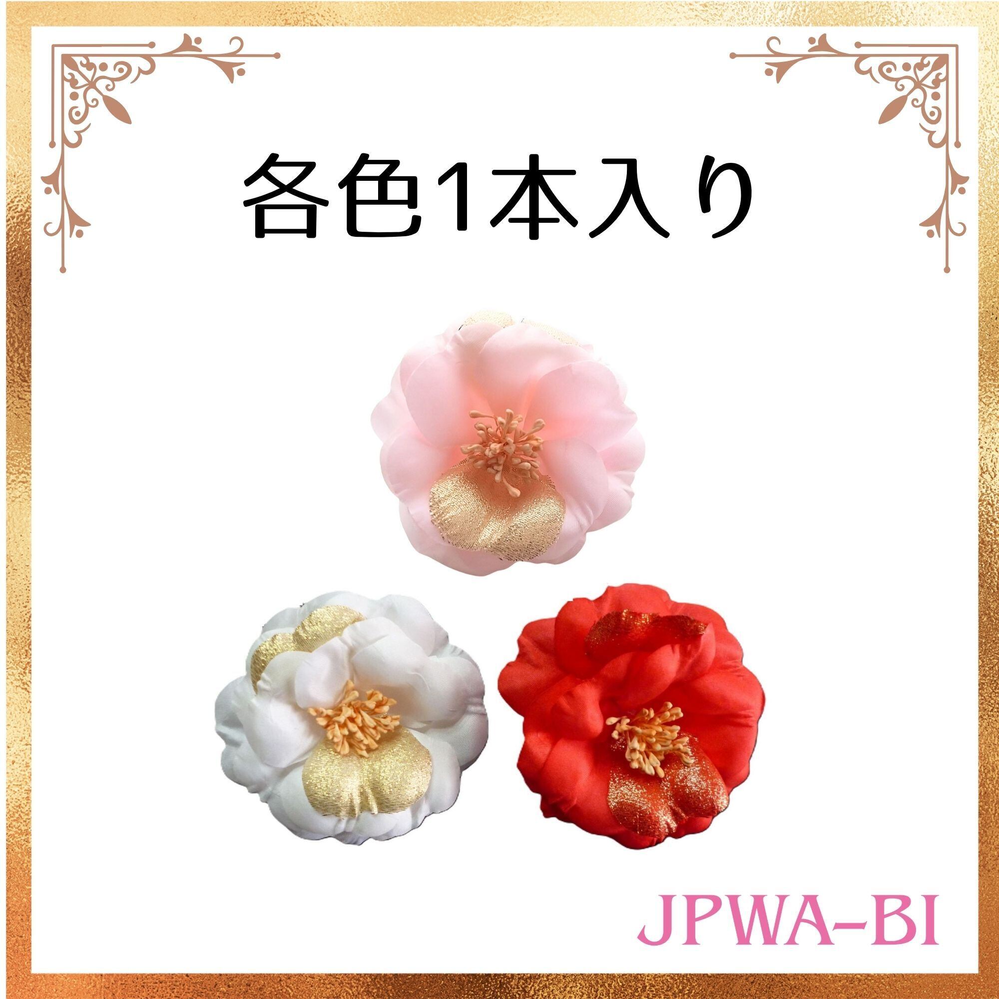 アーティフィシャルフラワー 金ラメ入り椿 ワイヤー付 3色まとめ売り 日本製 箱入 JPWA-BI
