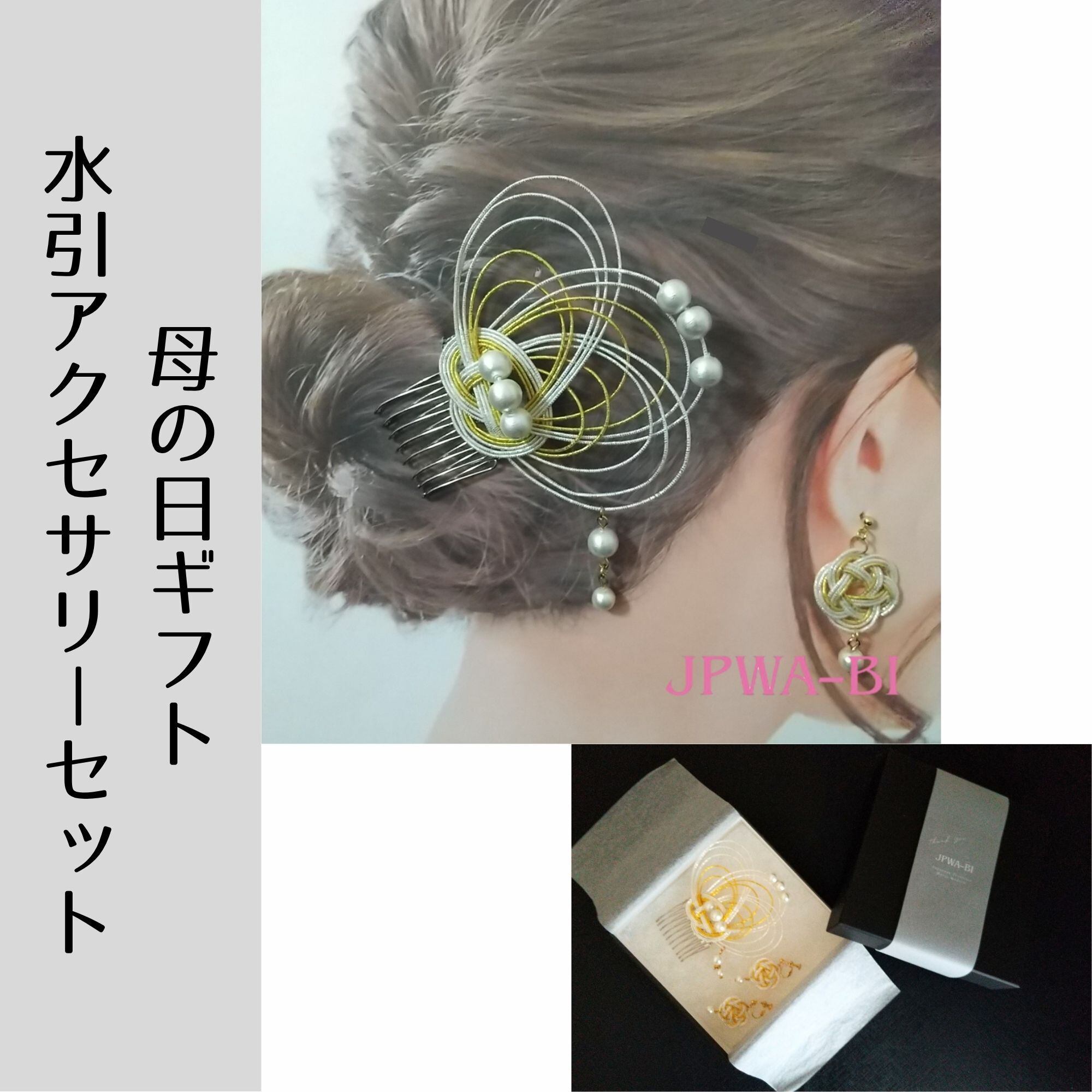 日本の伝統美を現代に届けるブランド「JPWA-BI」より、母の日ギフトに最適な水引髪飾りとピアスまたはイヤリングのセットが新登場しました!