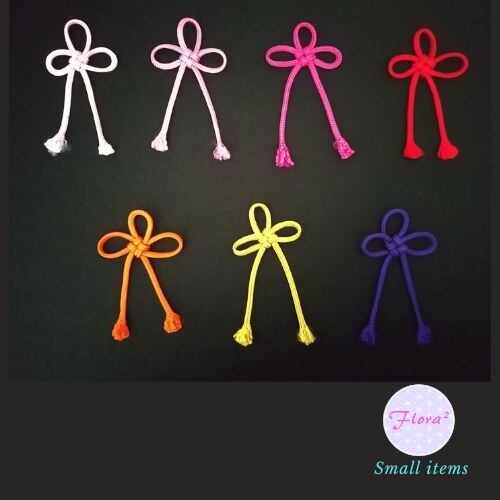 お花の素材:剣つまみはシルク。オダマキつまみは綿。造花はポリエステル