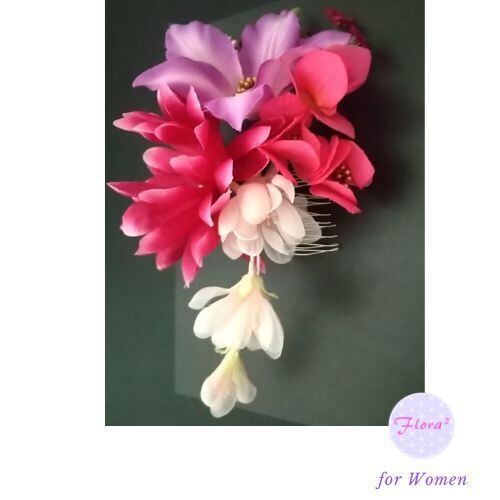 髪飾り//成人式/結婚式/和装/着物/花飾り/赤紫の髪飾り/透明パッケージ入り