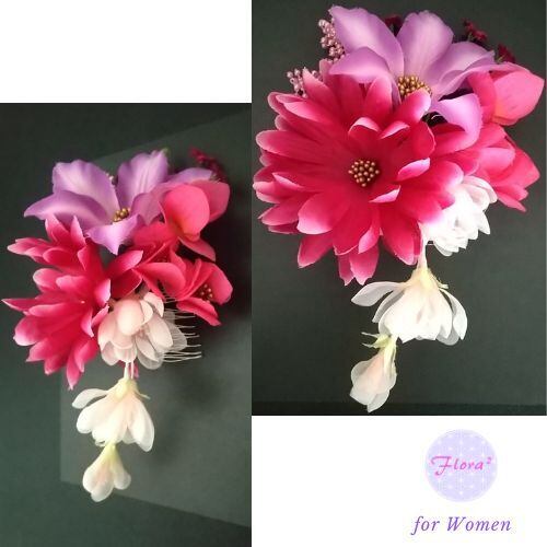 私たちの髪飾りは、伝統と現代を融合させたデザインです。赤紫や紫系の和服におススメ。成人式や結婚式などのシーンで活躍します。