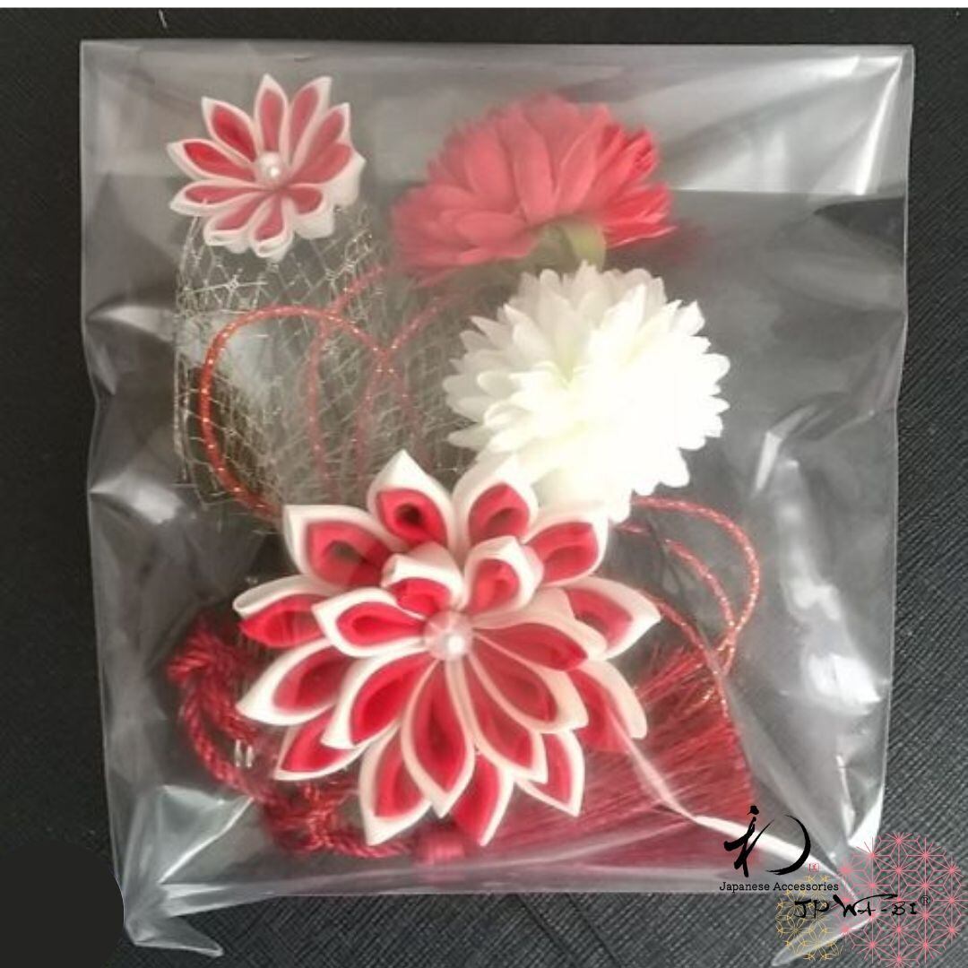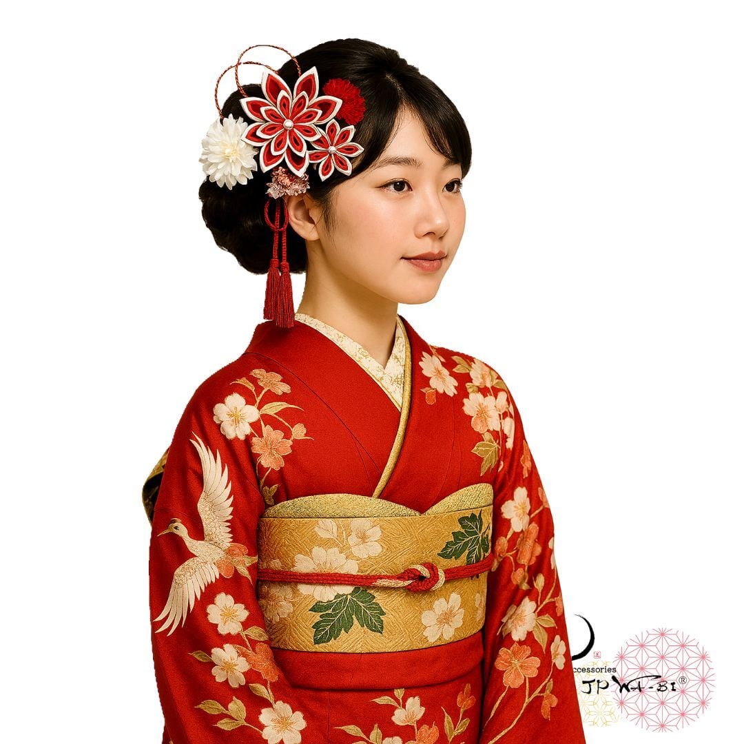 着物やヘアスタイルに華やかさと華美さをプラスする、髪飾り・花飾り。成人式や結婚式、などのおめでたい日に、紅白の髪飾りはぴったりのアイテムです。