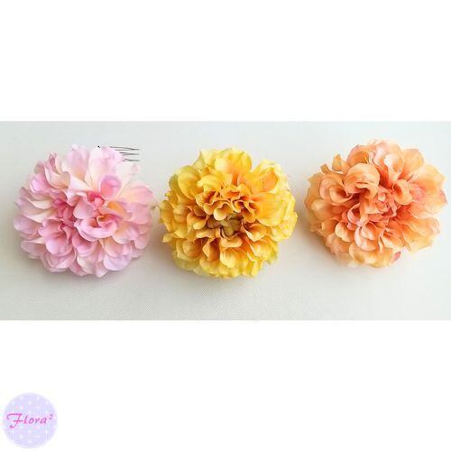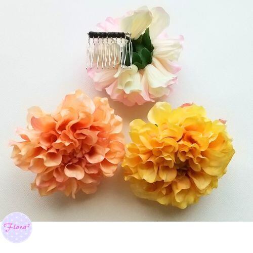 この髪飾りは、一つ一つ手作りで作られています。花びらの質感や色味にまでこだわり、花の美しさを最大限に引き出しています。華やかな花々が髪に彩りを添え、あなたを特別な日の主役に変身させます。
