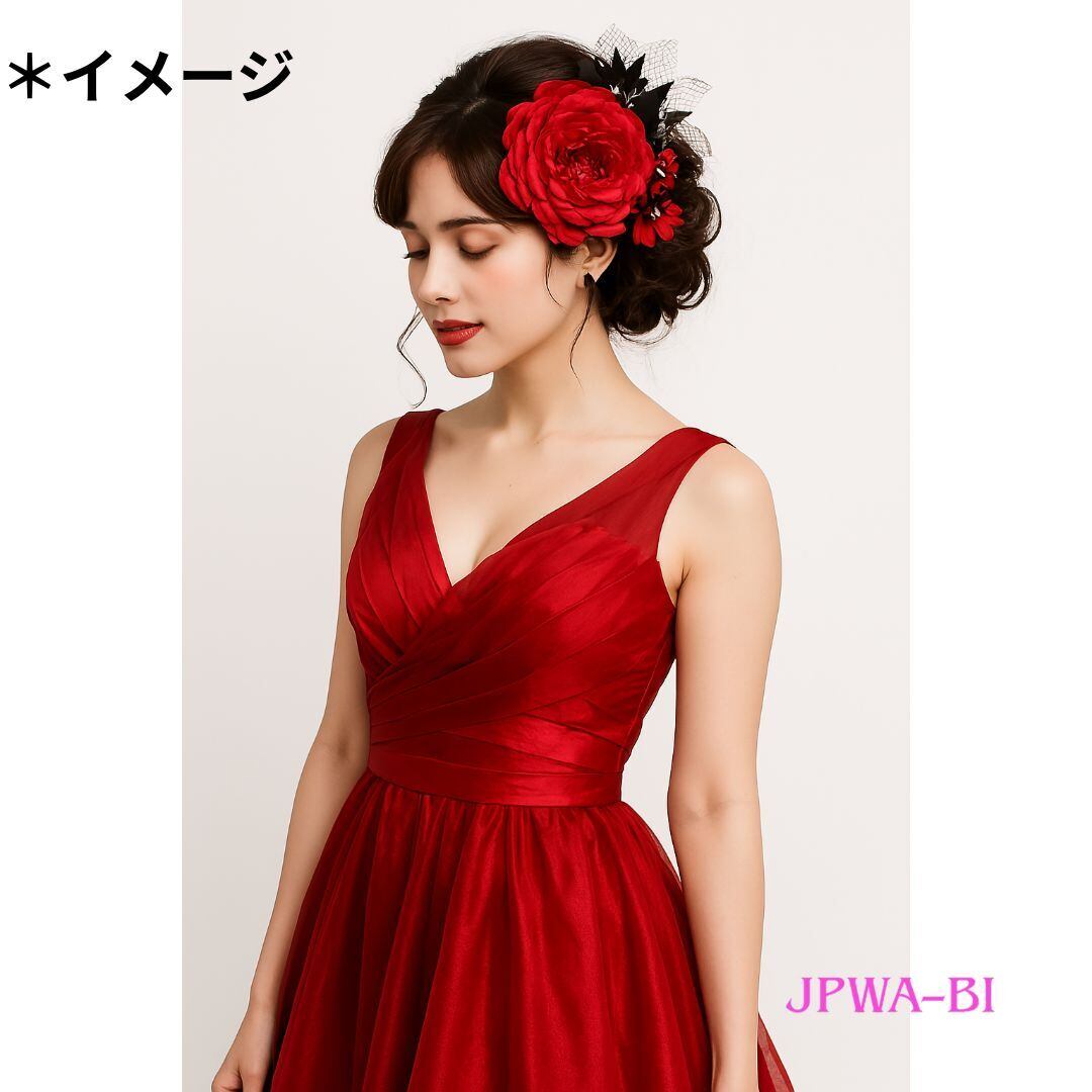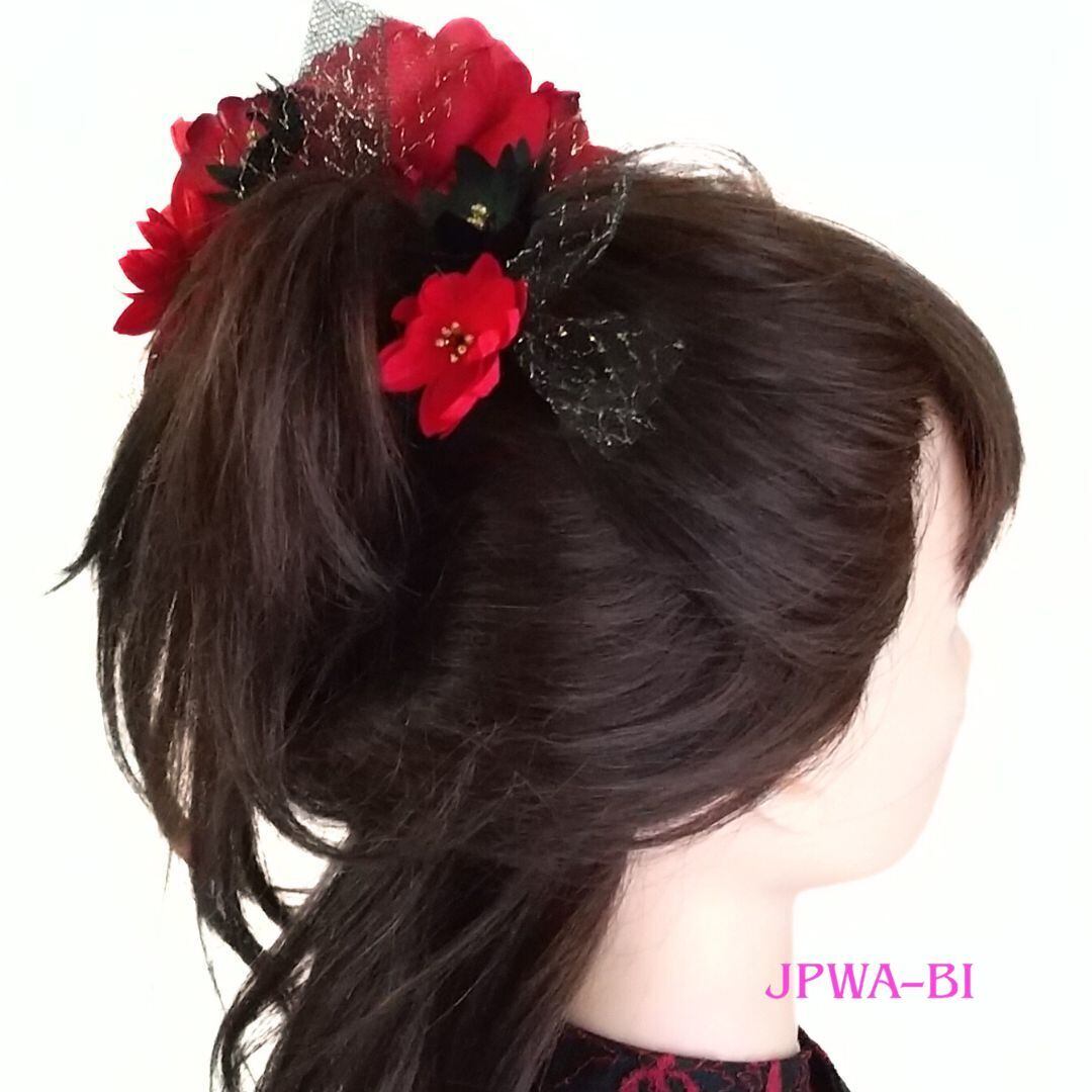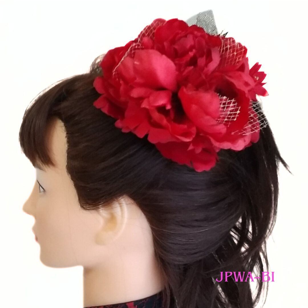 赤牡丹のエレガントなデザインの花飾りと小花のMIXで、着物やカラードレスとの相性も抜群です。結婚式や成人式など、特別な場面でのアクセントにぴったりです。
