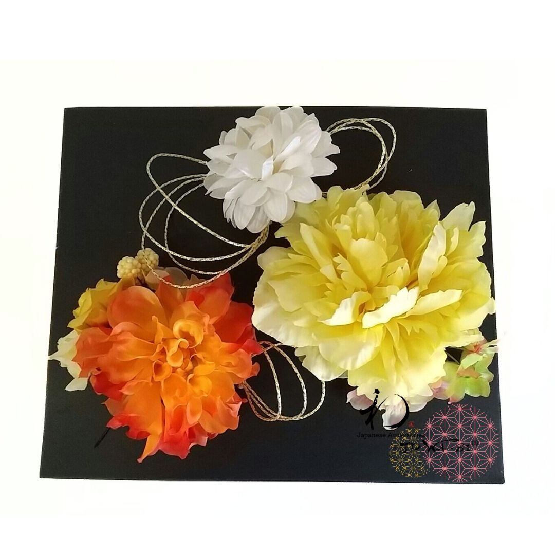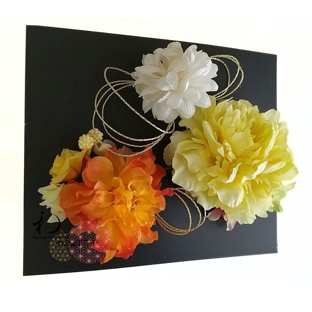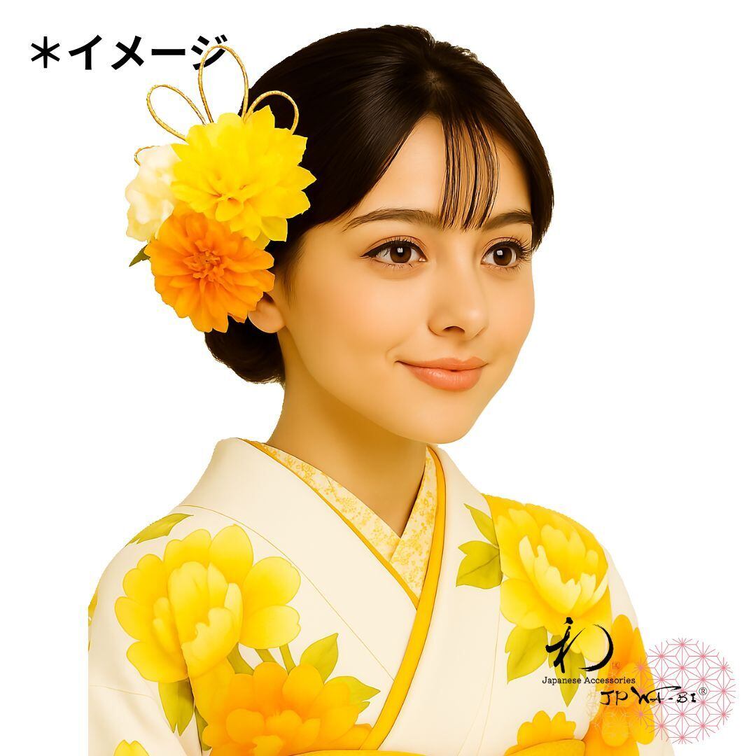 一つ一つの花びらや水引の線が美しく表現されており、黄色・オレンジ系のお着物に特におススメです!