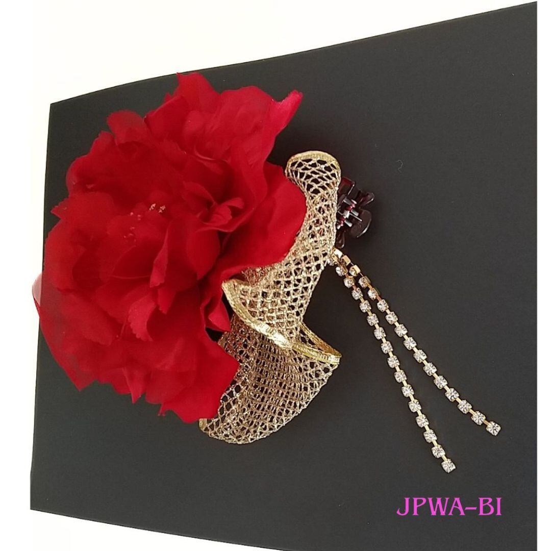 アイテム:コーム付き花飾りと挟み込みタイプのミニコーム付ダイヤレーンアクセサリー合わせて2点入りセットの髪飾り。そのまま髪に装着いただけます。