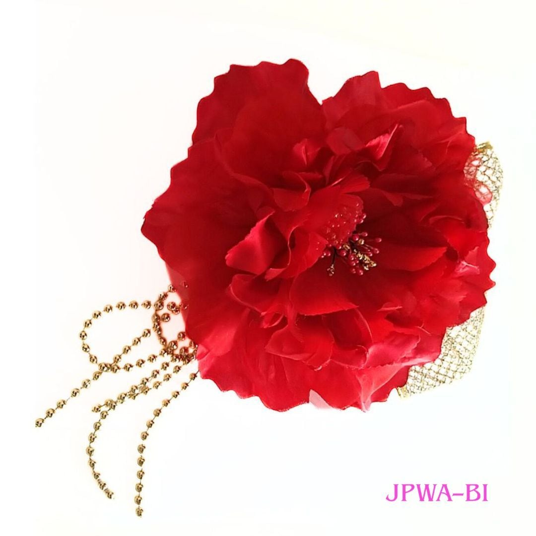 アイテム:コーム付き花飾りとゴールドのパールレーン付一体型の髪飾り。