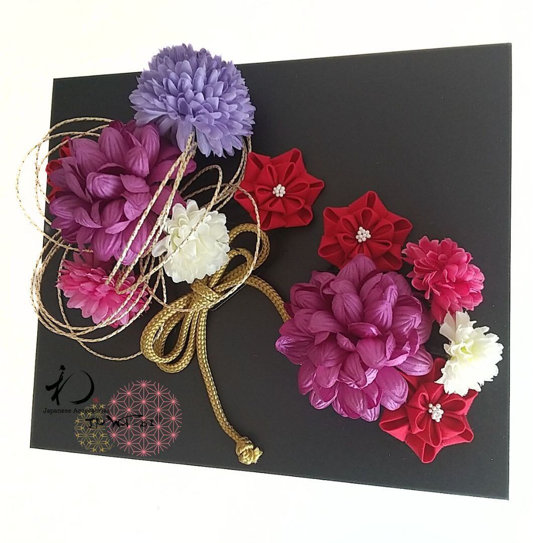 伝統的なつまみ細工の花や水引とのコラボは、技術と現代のデザインが融合した、唯一無二の逸品です。