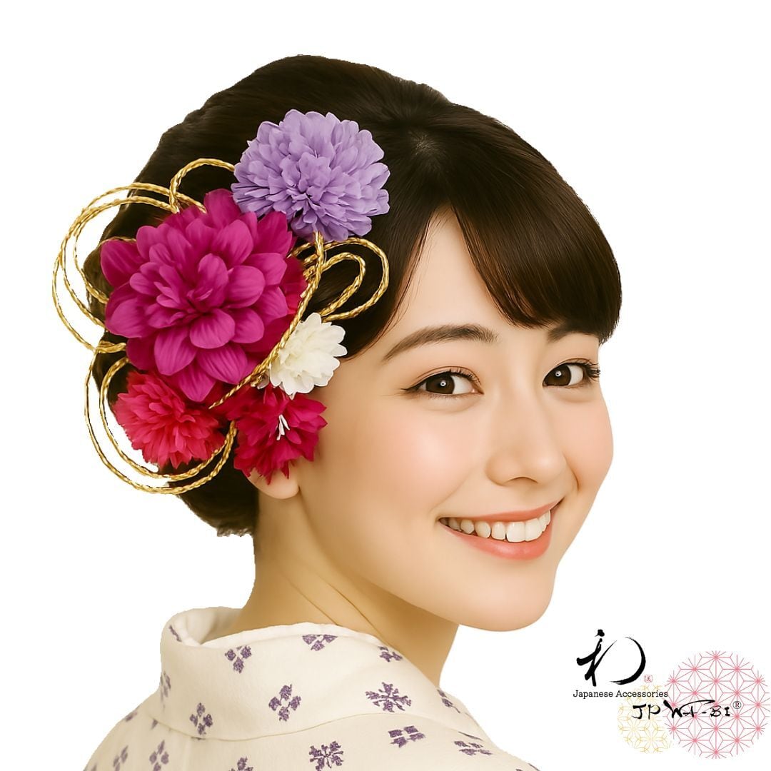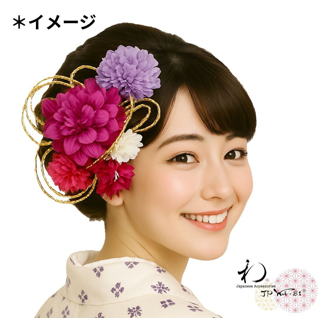 晴れ着を引き立てるこの華やかな髪飾りは、特別な日の装いをより美しく彩ります。