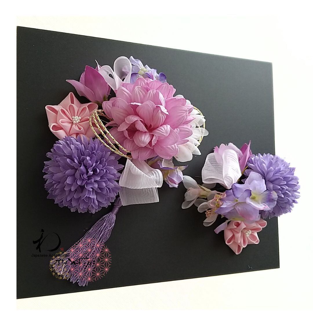 アーティフィシャルフラワーやつまみ細工、水引、タッセルなど、日本の伝統的な技術を駆使して作られた逸品です。