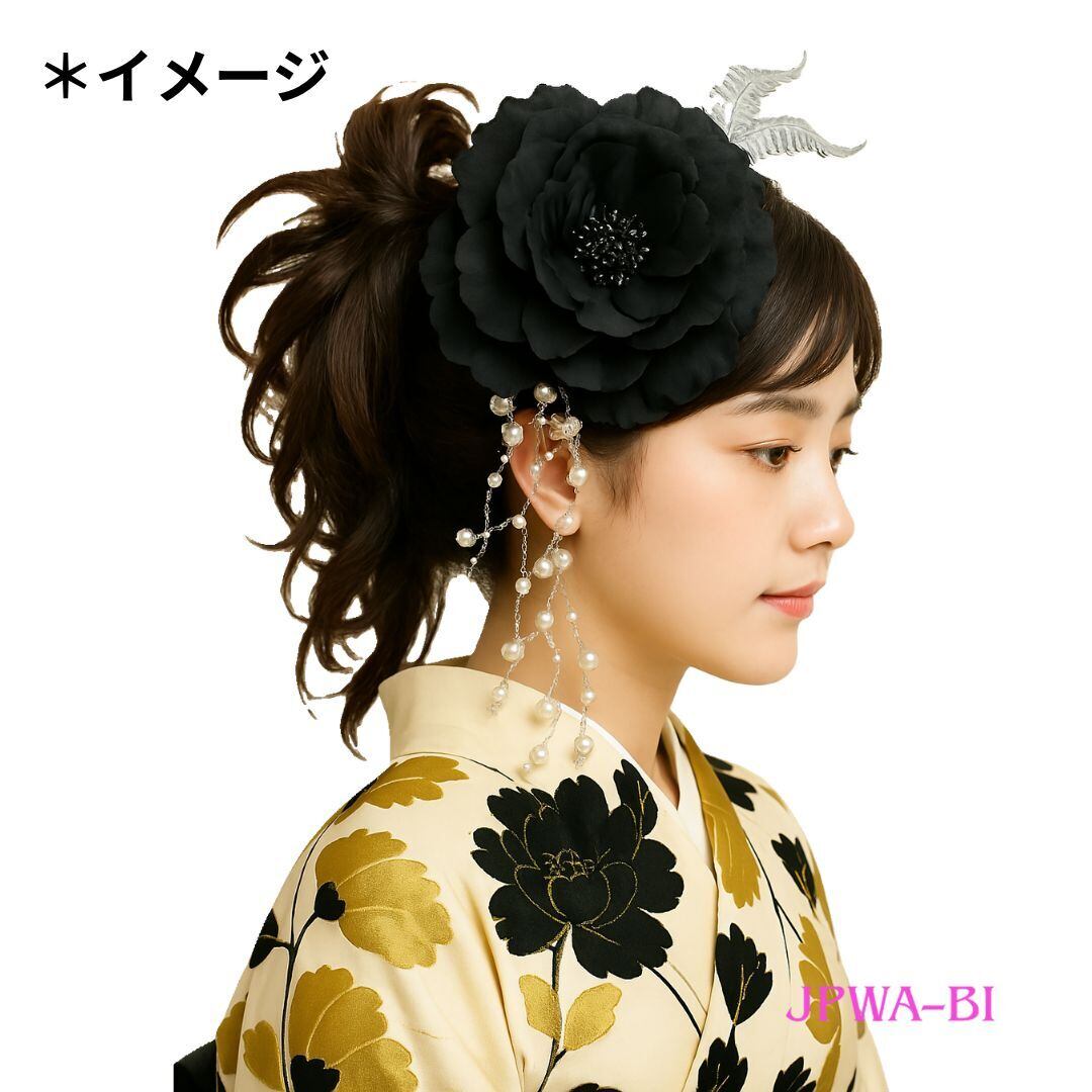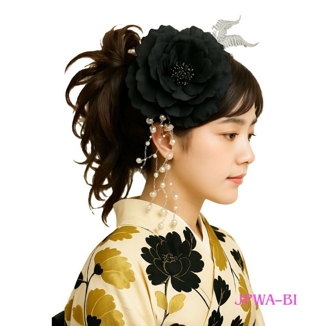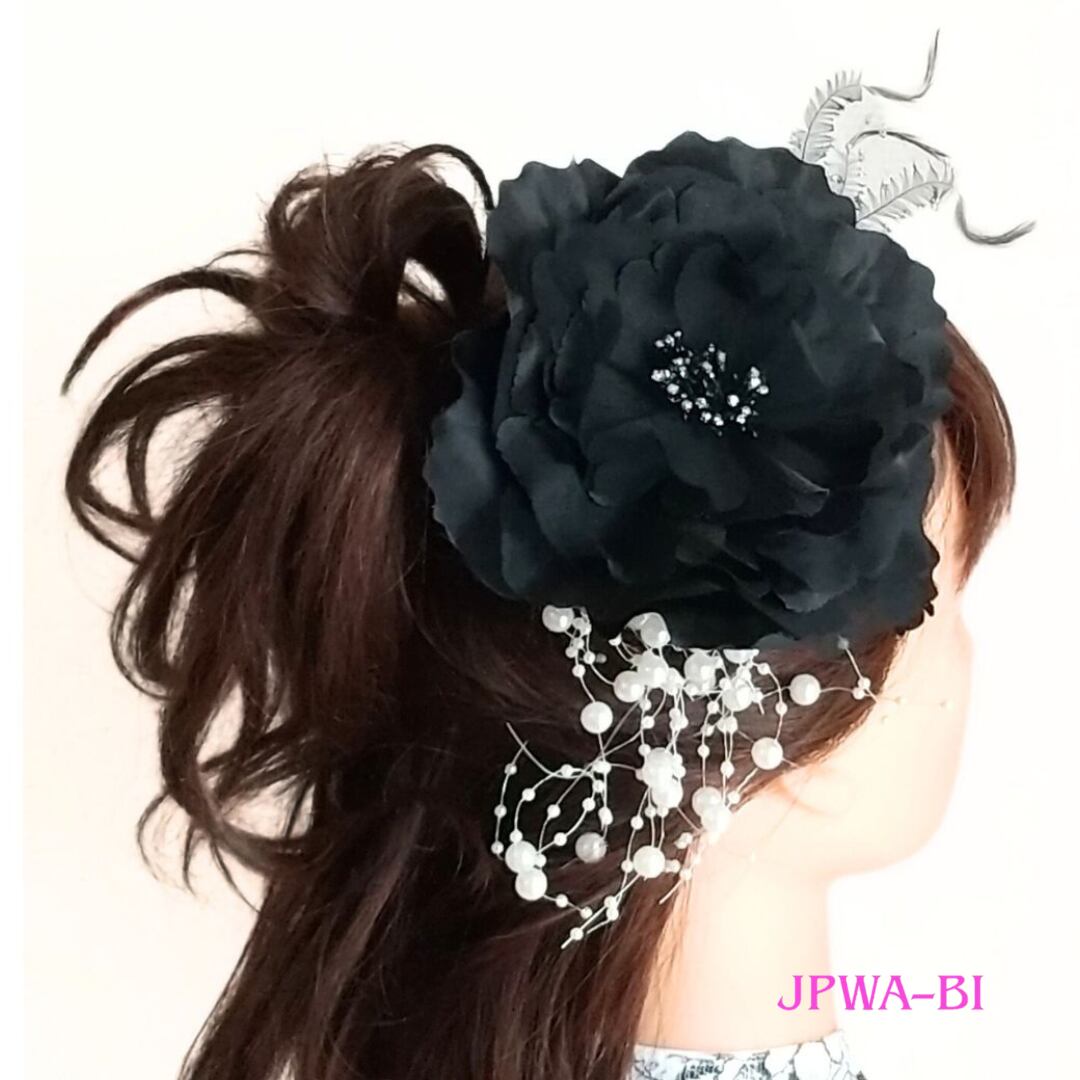 クールで大人かっこいい髪飾り・ヘッドドレス黒い花飾り。