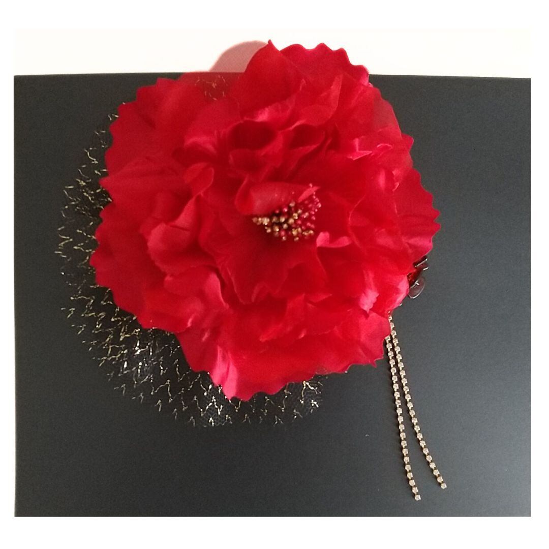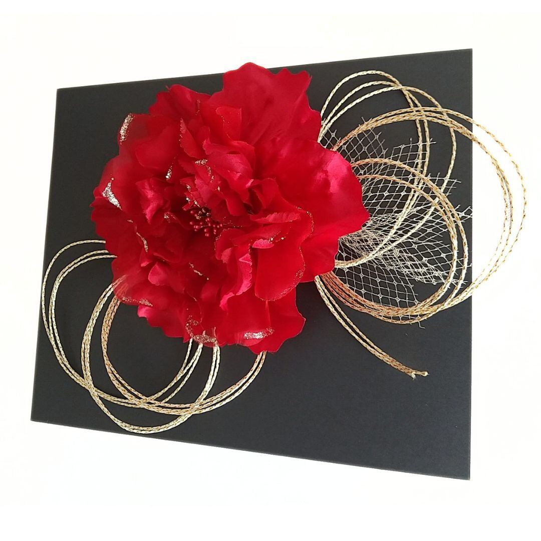 クールで大人かっこいい髪飾り・ヘッドドレス//赤紫/結婚式・成人式/着物・ドレス/羽根付/透明パッケージ入り