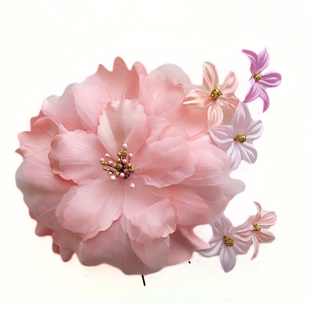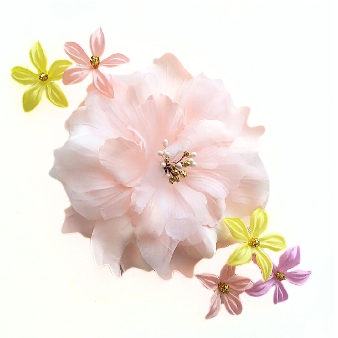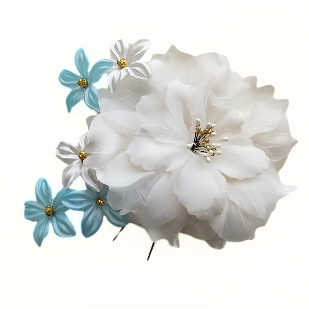 国産髪飾り・ヘッドドレス//和洋OK/選べる3色/着物・ドレス/アーティフィッシャルフラワー/3点入り/袋入り販売