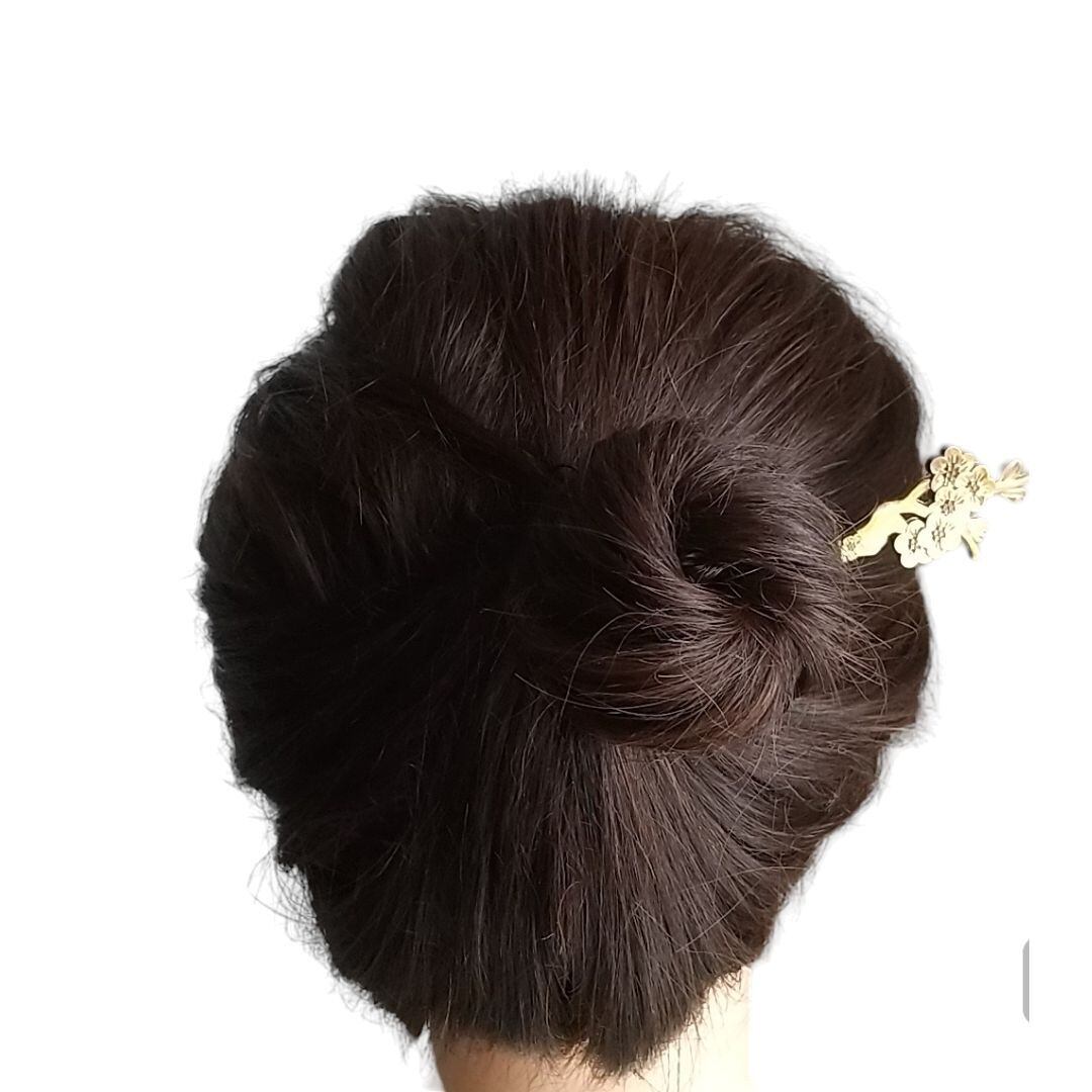華やかなゴールド色は、どんな髪型にも調和し、日本の伝統と現代の美しさを結びつけます。