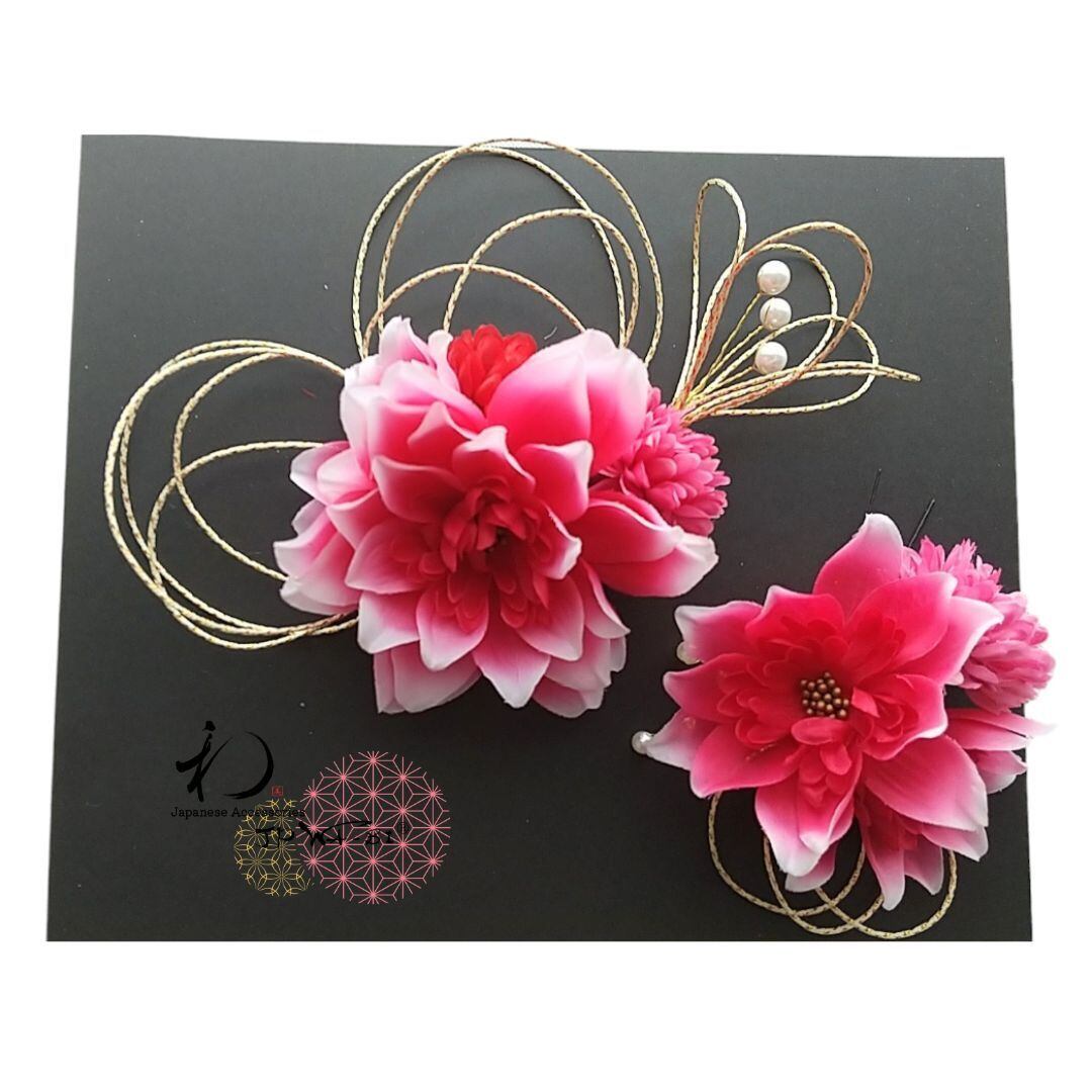 花弁のグラデーションが美しい、お祝いに彩りを添える、髪飾り。