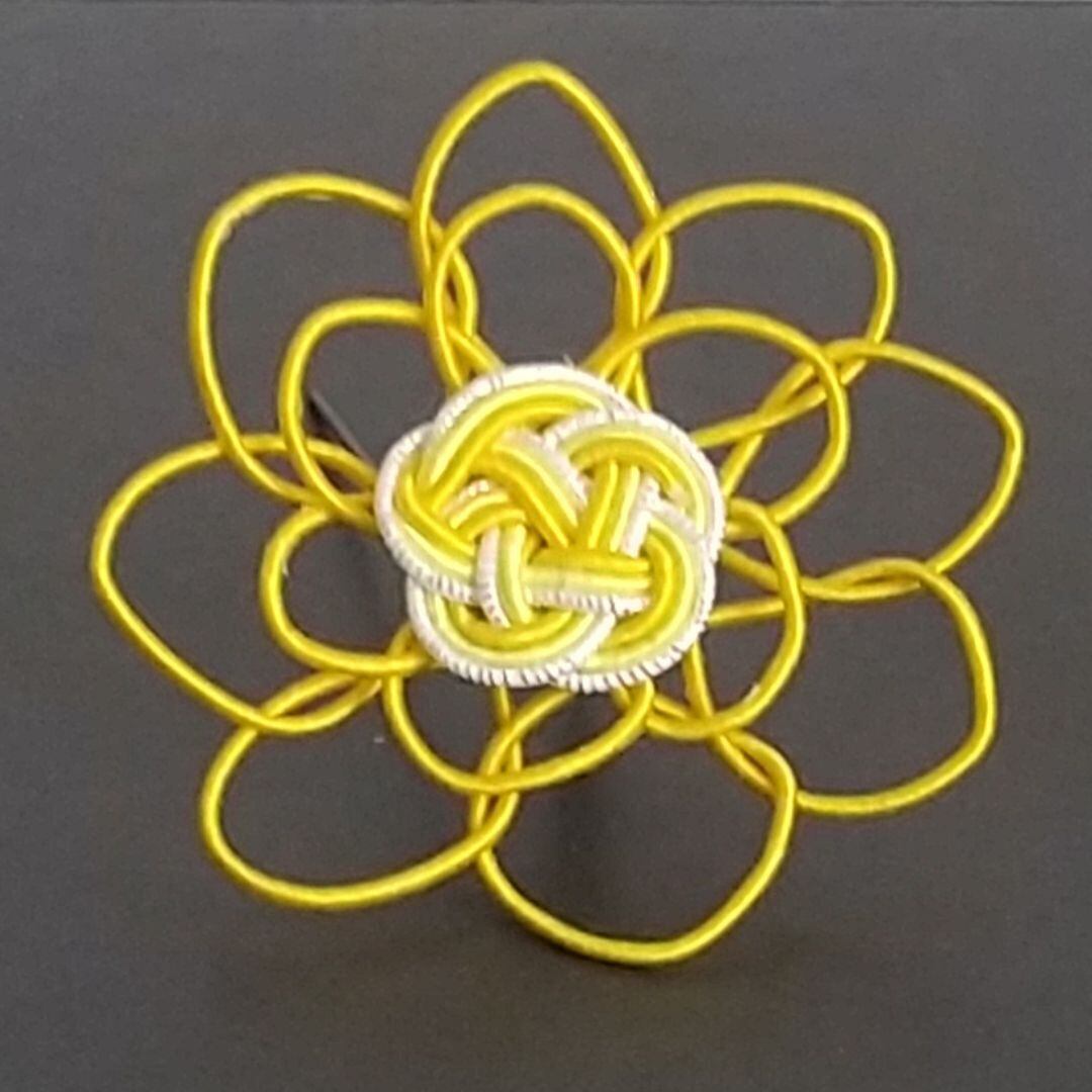 日本の伝統的な水引を使った、可憐なひまわりの髪飾りです。