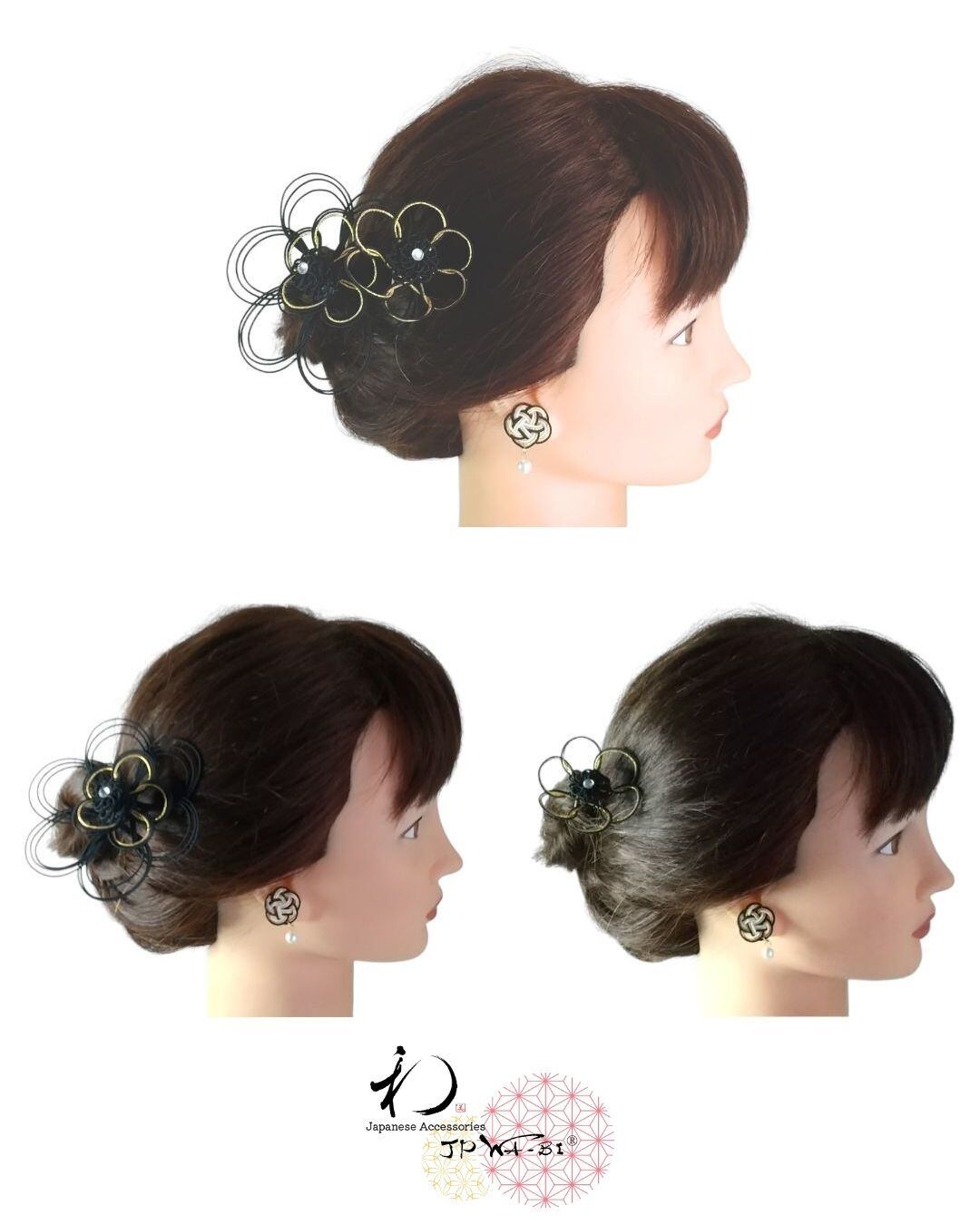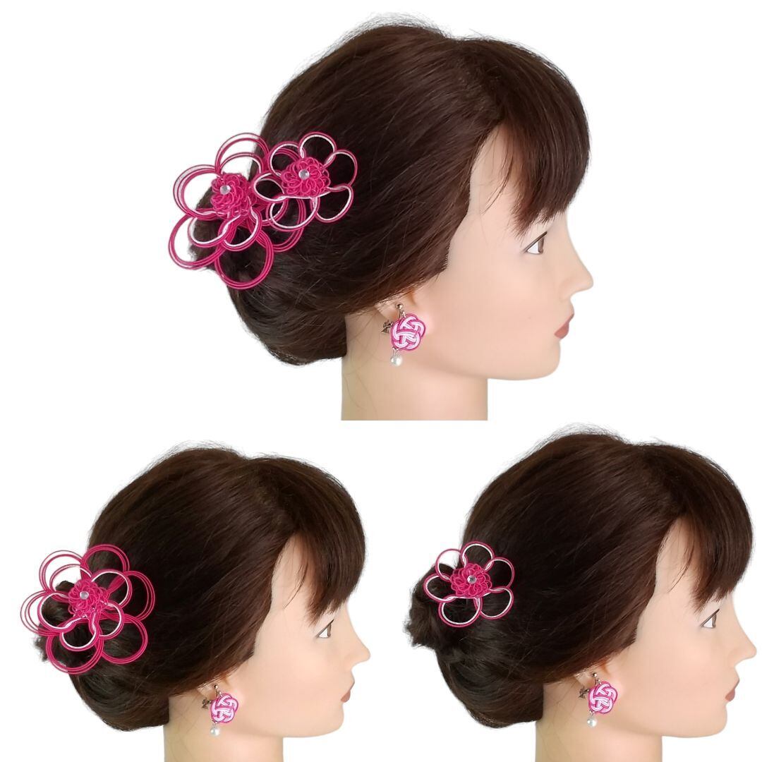 国産水引髪飾り2点&ピアスorイヤリングペアセット。
