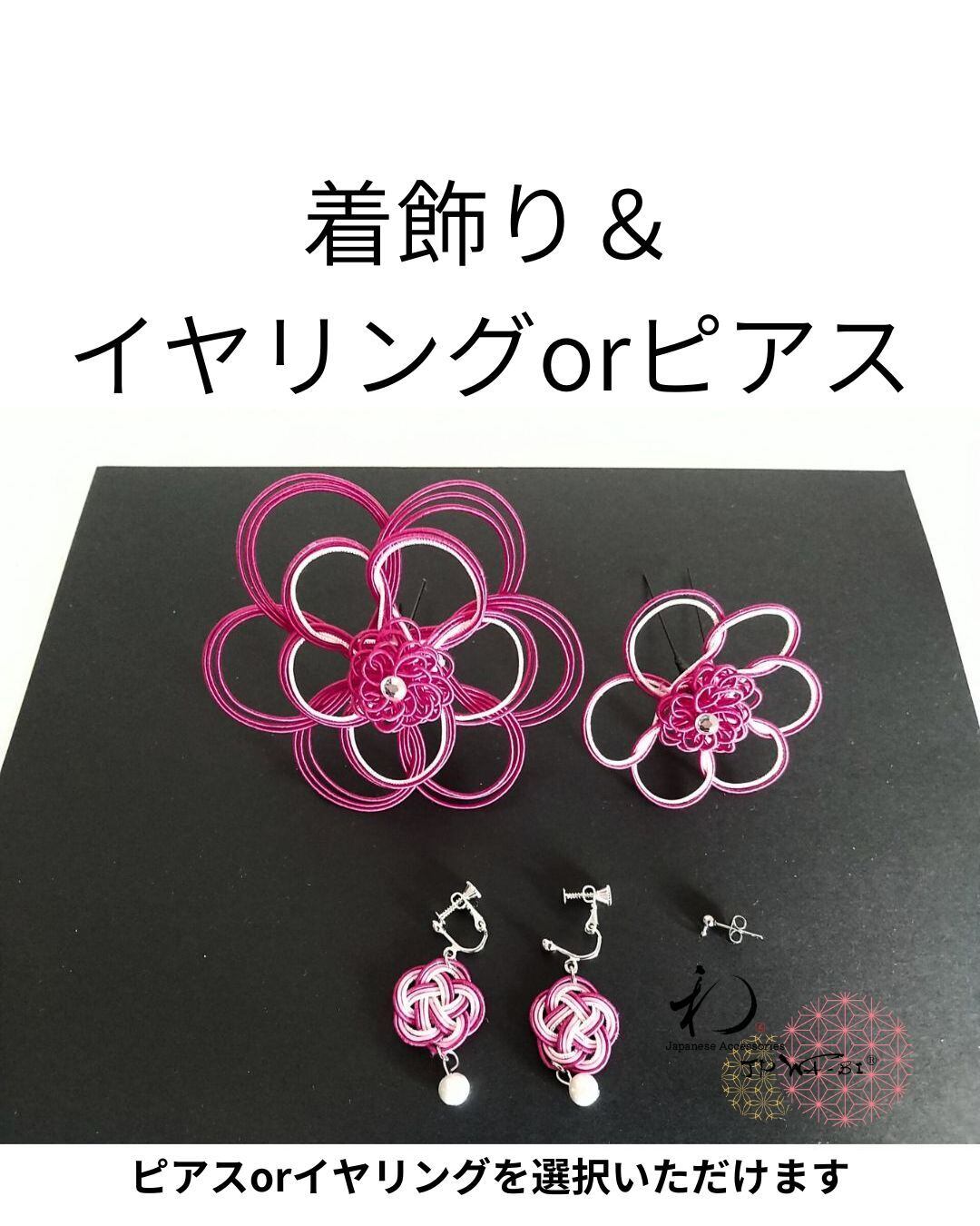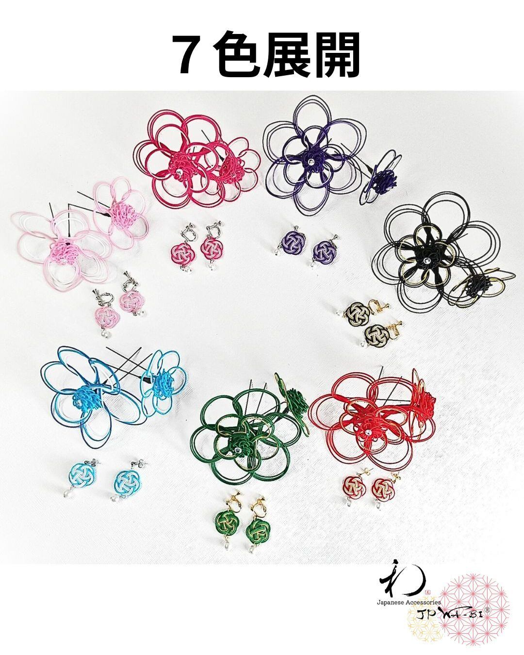 国産水引髪飾り2点&ピアスorイヤリングペアセット。