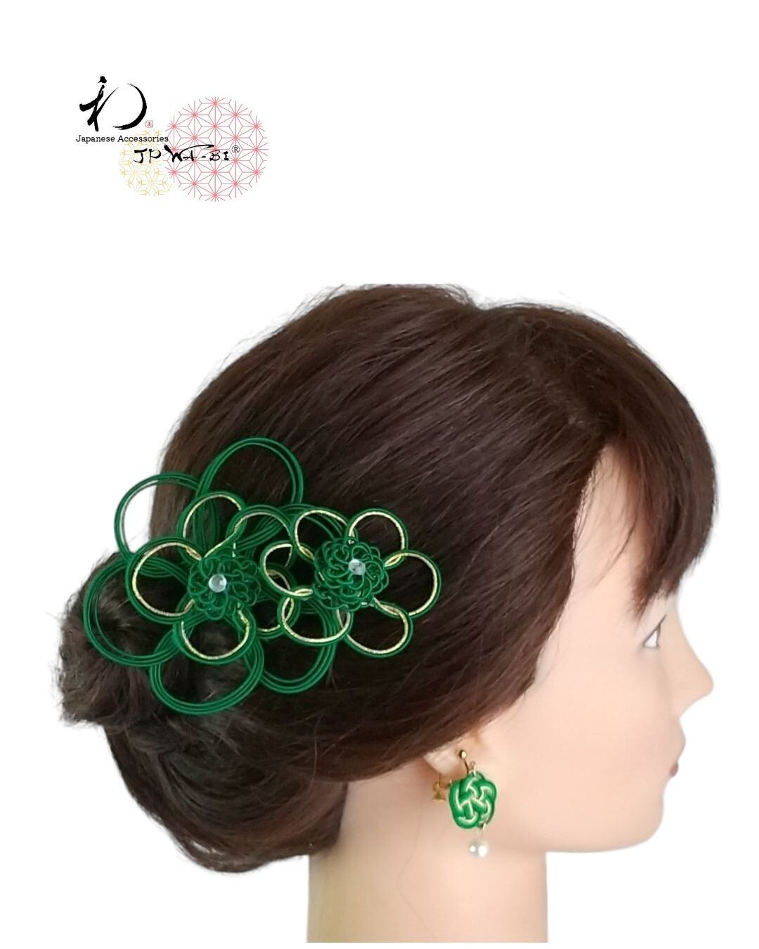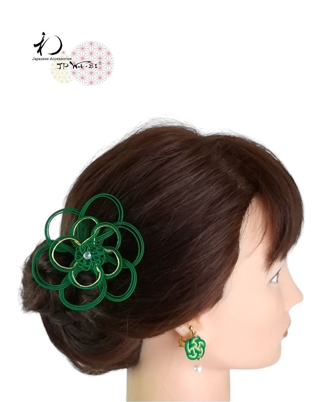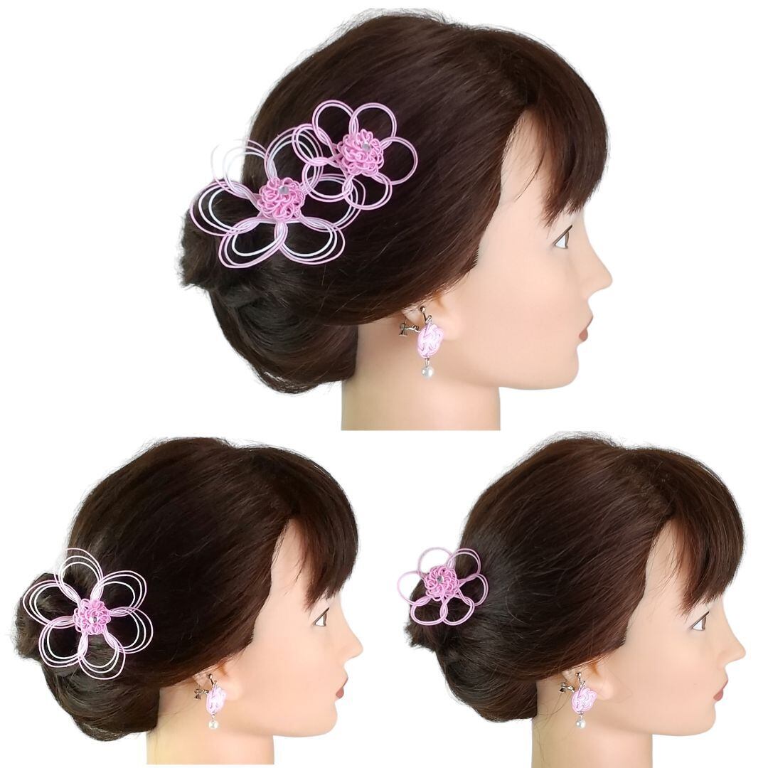 国産水引髪飾り2点&ピアスorイヤリングペアセット。