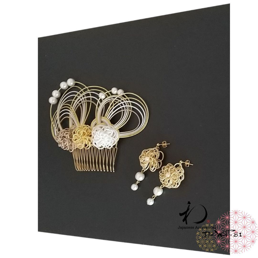 着物や浴衣を華やかに演出するのに最適なアイテムで、コーム付きで簡単に髪に留めることができます。