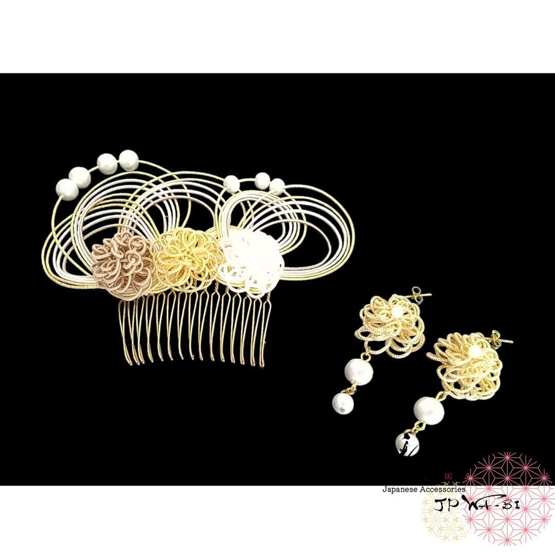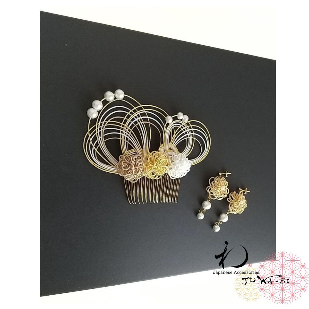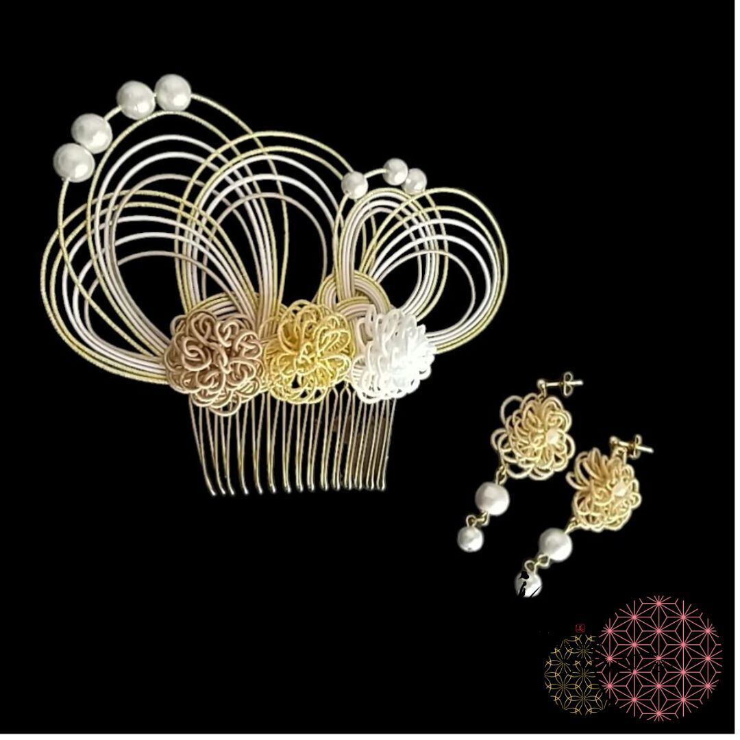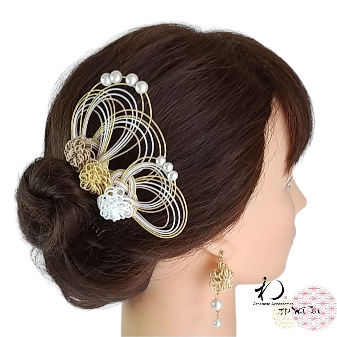 和洋折衷 国産水引髪飾り・簪//着物・浴衣・ドレス/コーム付き/袋入り