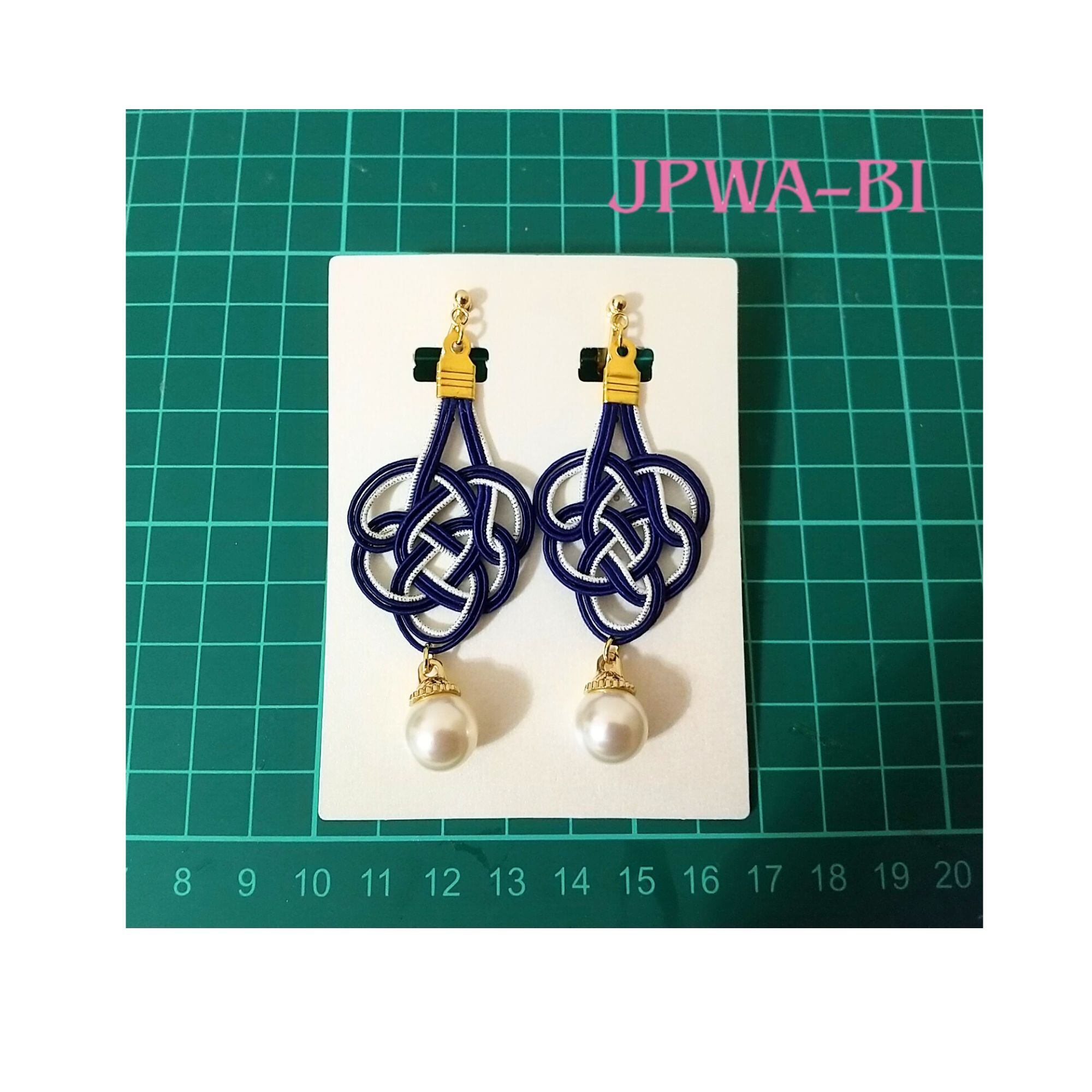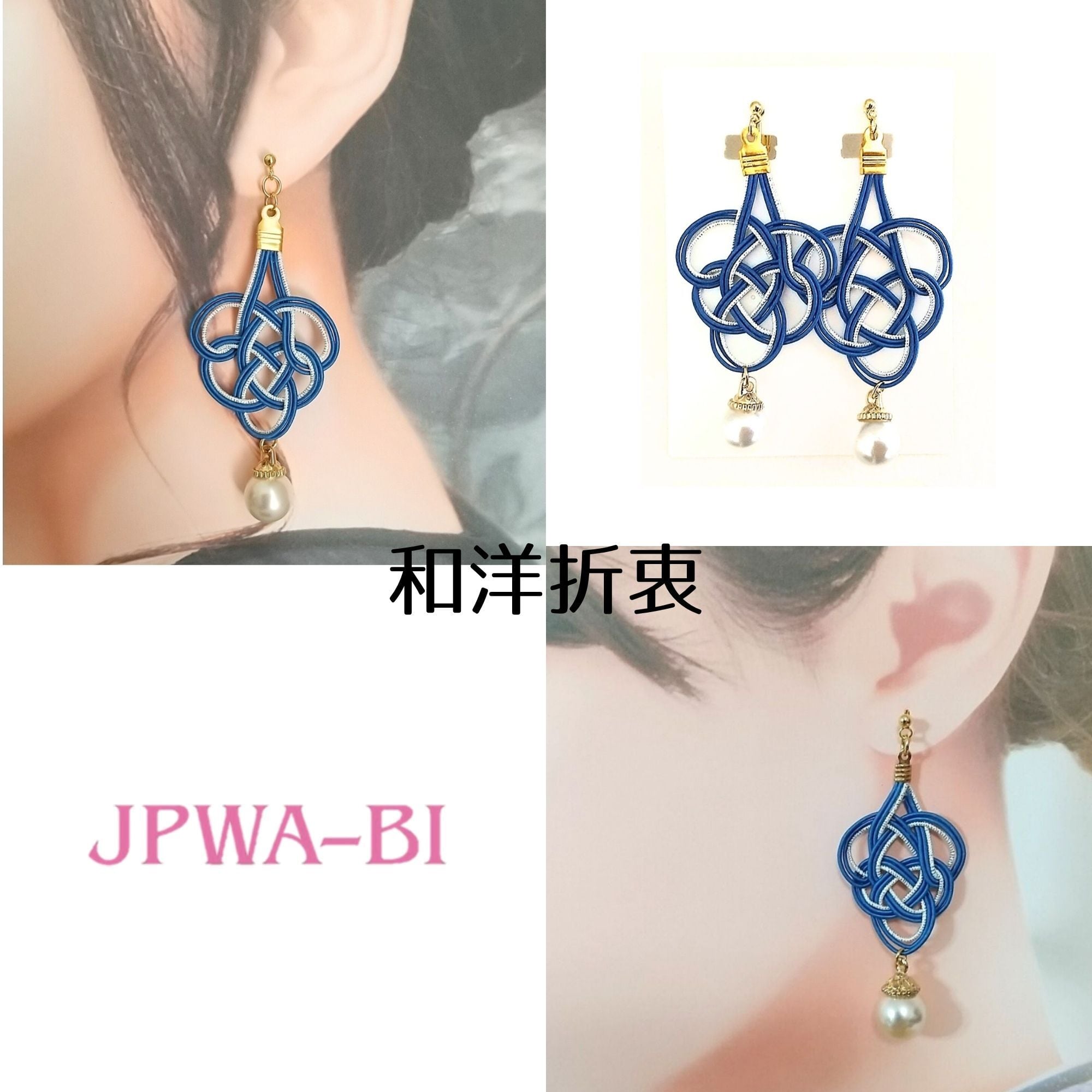 水引イヤリング//金属アレルギーの人にも優しいサージカルステンレス使用/和洋折衷アクセサリー/ブルー×シルバー/袋入り