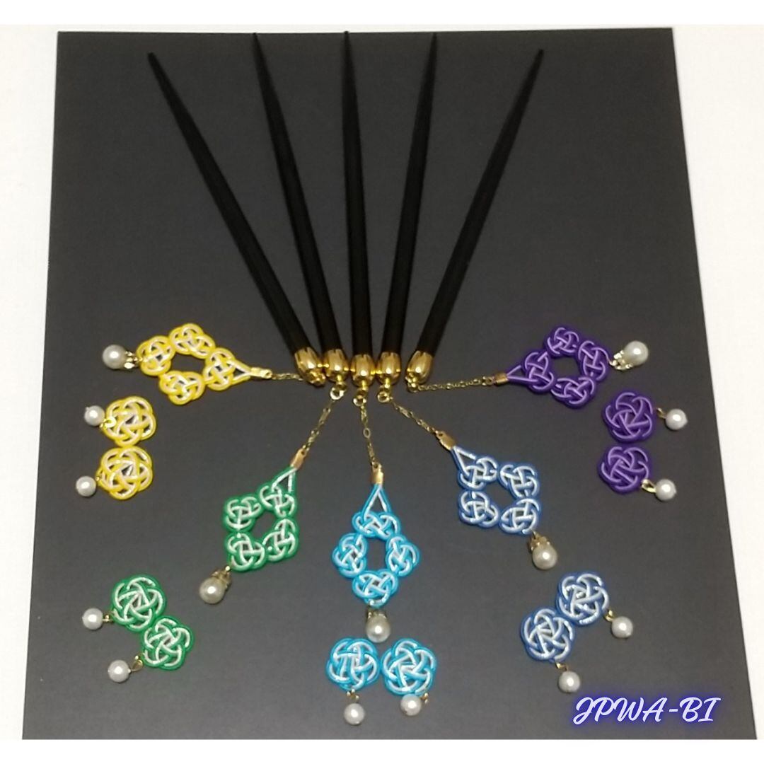 <お揃いのカラーの簪イヤリングorピアスセット>
