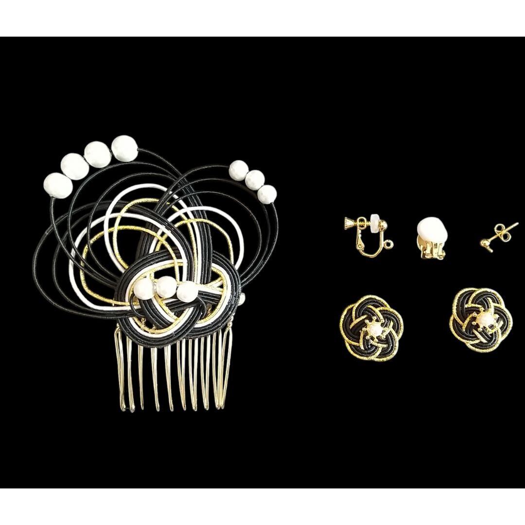 和洋折衷 国産水引髪飾り・簪/結婚式・成人式/着物・留袖・振袖・ドレス/コーム付き/袋入り