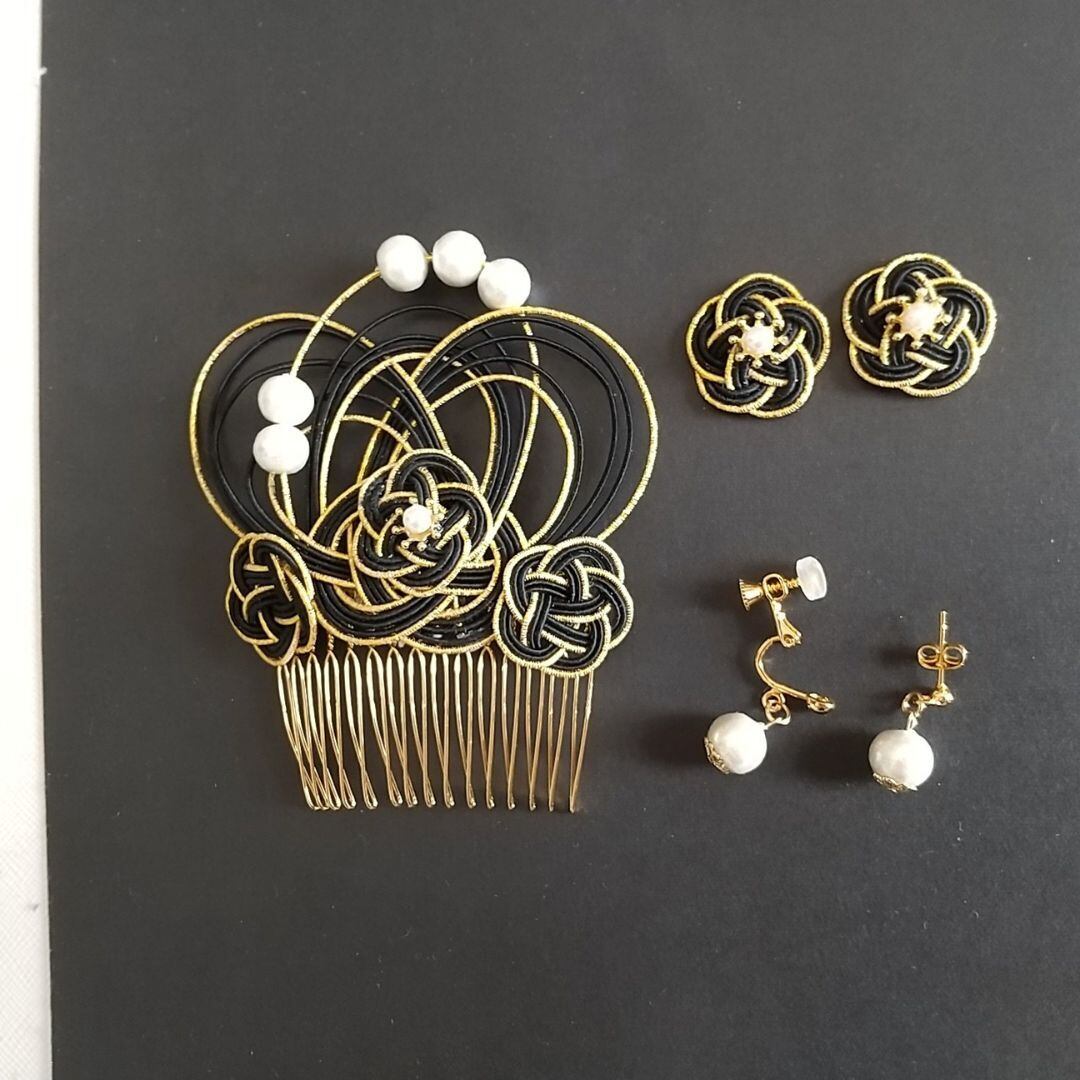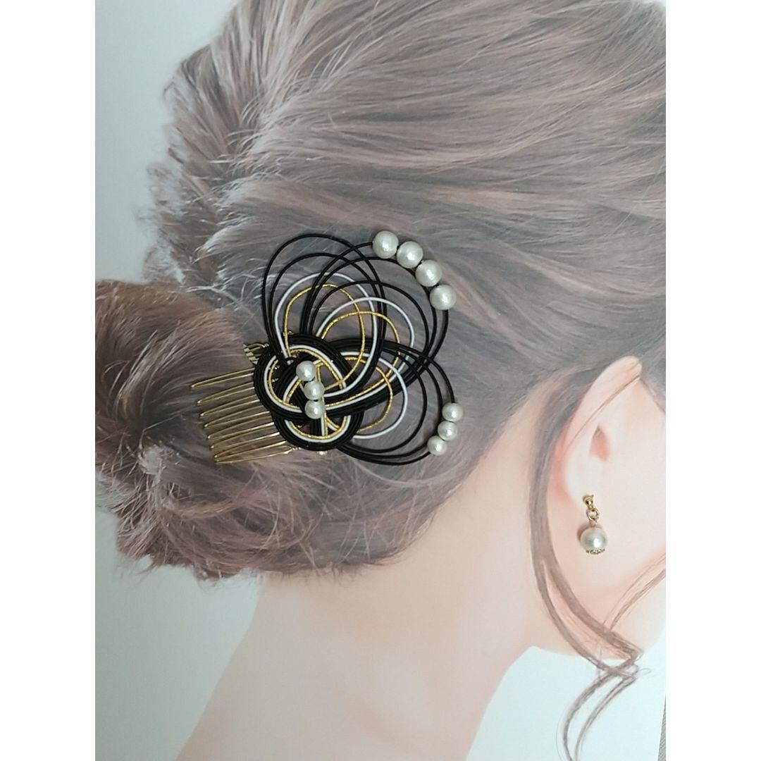 和洋折衷 国産水引髪飾り・簪/結婚式・成人式/着物・留袖・振袖・ドレス/コーム付き/袋入り