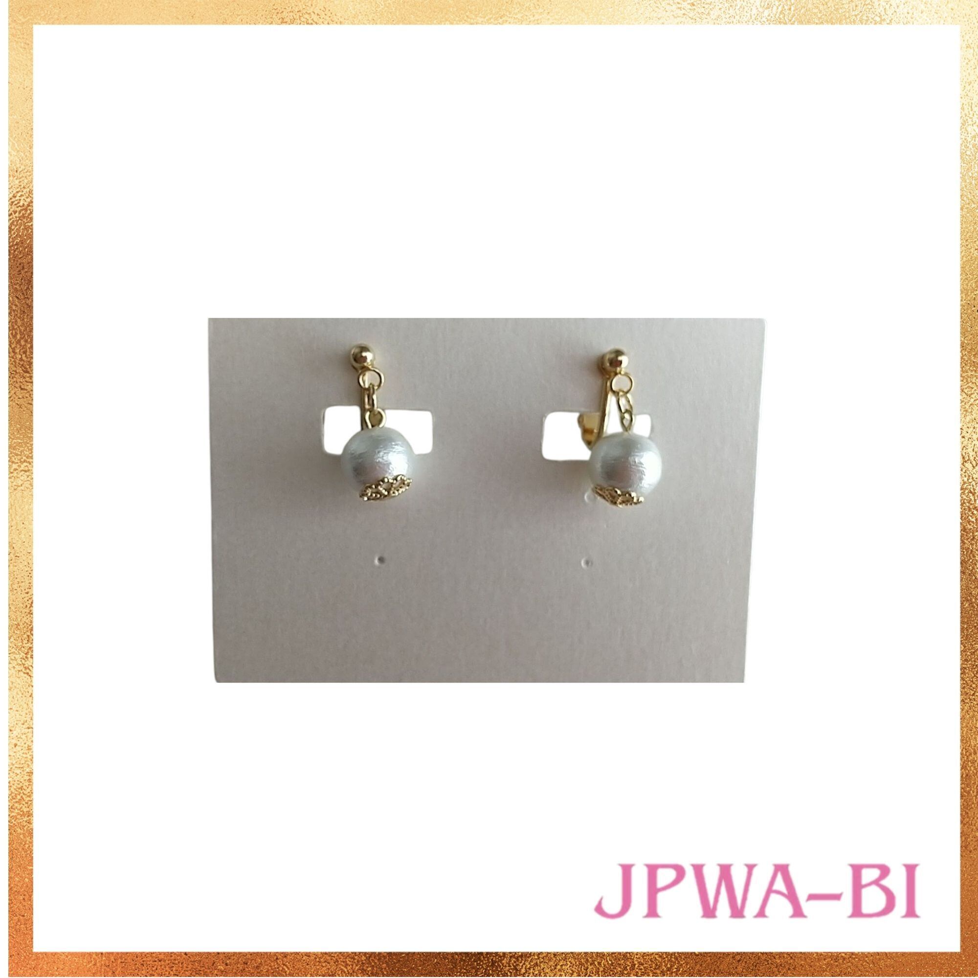 コットンパールイヤリング//金属アレルギー対応/落としにくい/耳が痛くなりにくいシリコンカバー付イヤリング/軽くて丈夫/冠婚葬祭万能アイテム/袋入り | 和洋折衷アクセサリー ・小物をプロデュース するジェイピーワビ